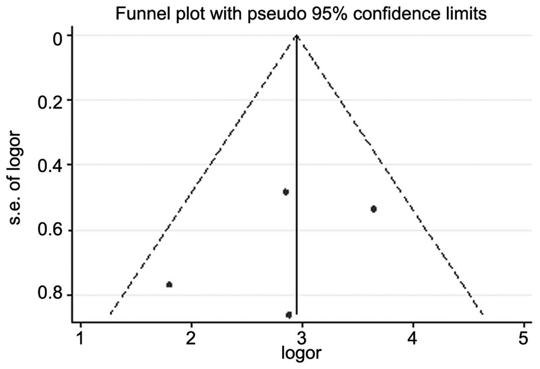 Funnel plot and Egger’s test were performed to access the publication bias of these studies. The shape of funnel plots showed symmetry (Fig. 5). The P-value of Egger’s test was 0.5. The result did not suggest any evidence of publication bias.