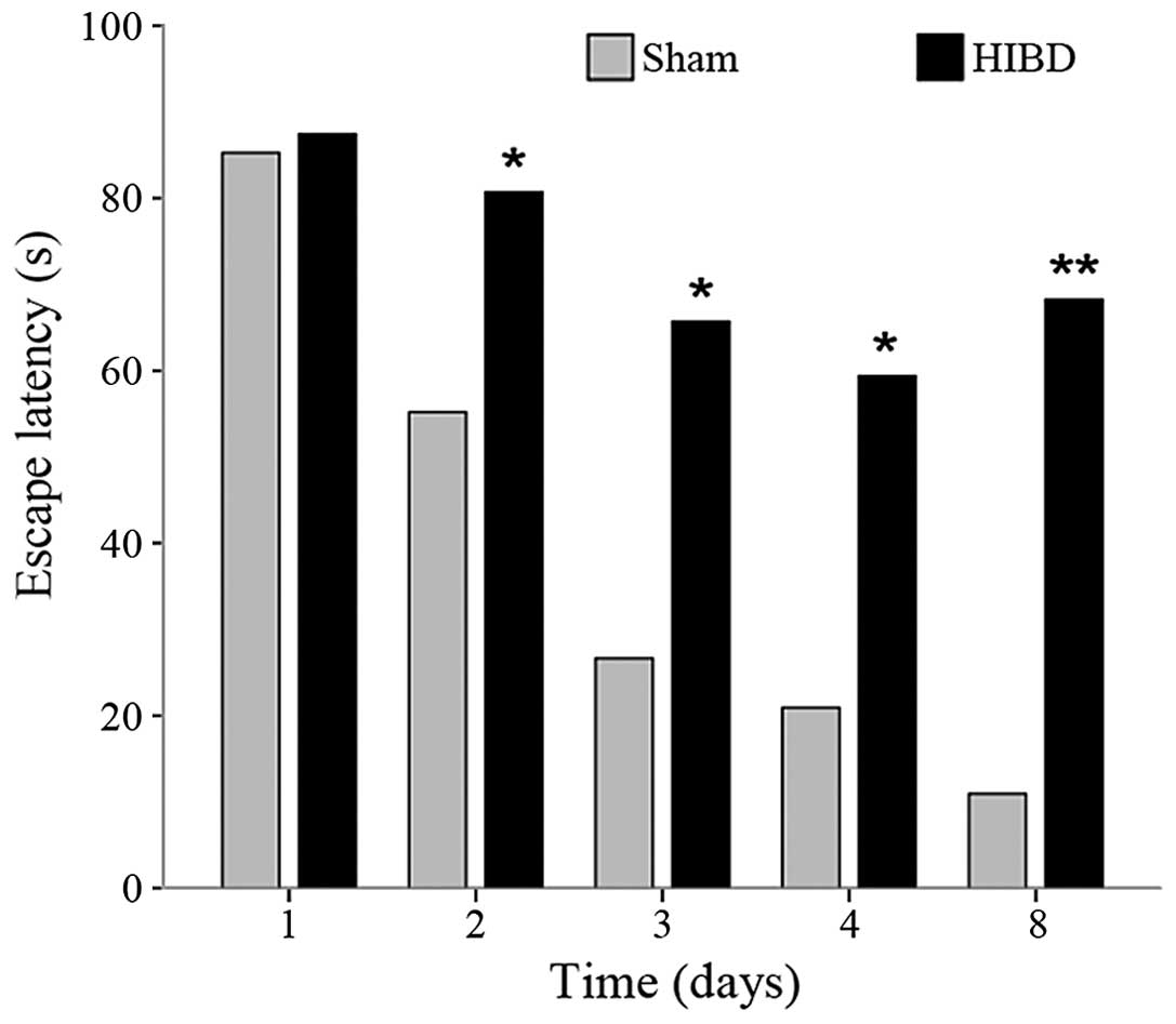 Morris R: Developments of a water-maze procedure for studying spatial learning in the rat. J Neurosci Methods. 11:47–60. 1984. View Article : Google Scholar : PubMed/NCBI