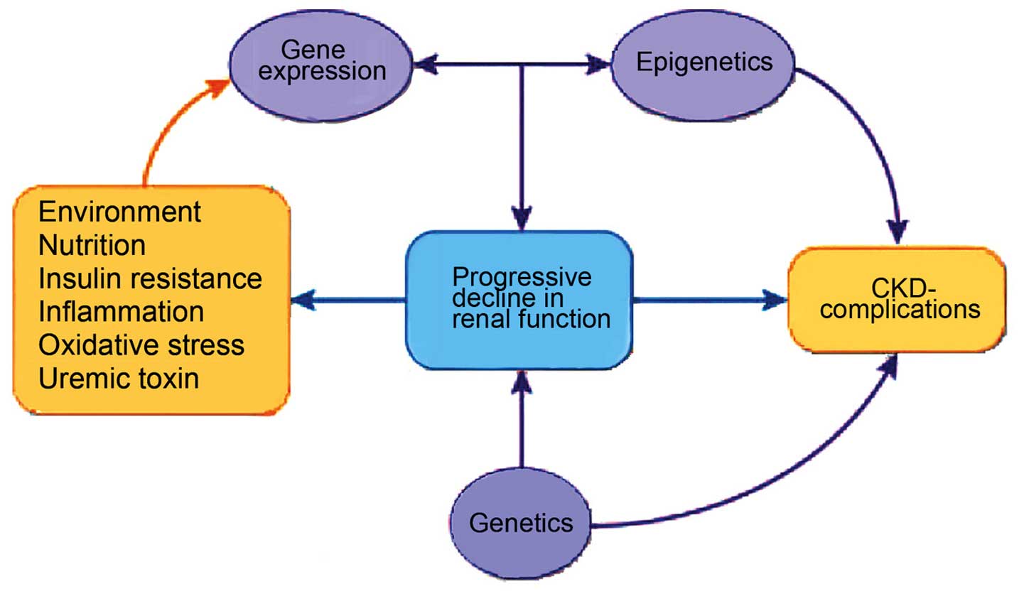 Dwivedi RS, Herman JG, McCaffrey TA and Raj DSC: Beyond genetics: Epigenetic code in chronic kidney disease. Kidney Int. 79:23–32. 2011. View Article : Google Scholar : PubMed/NCBI | |