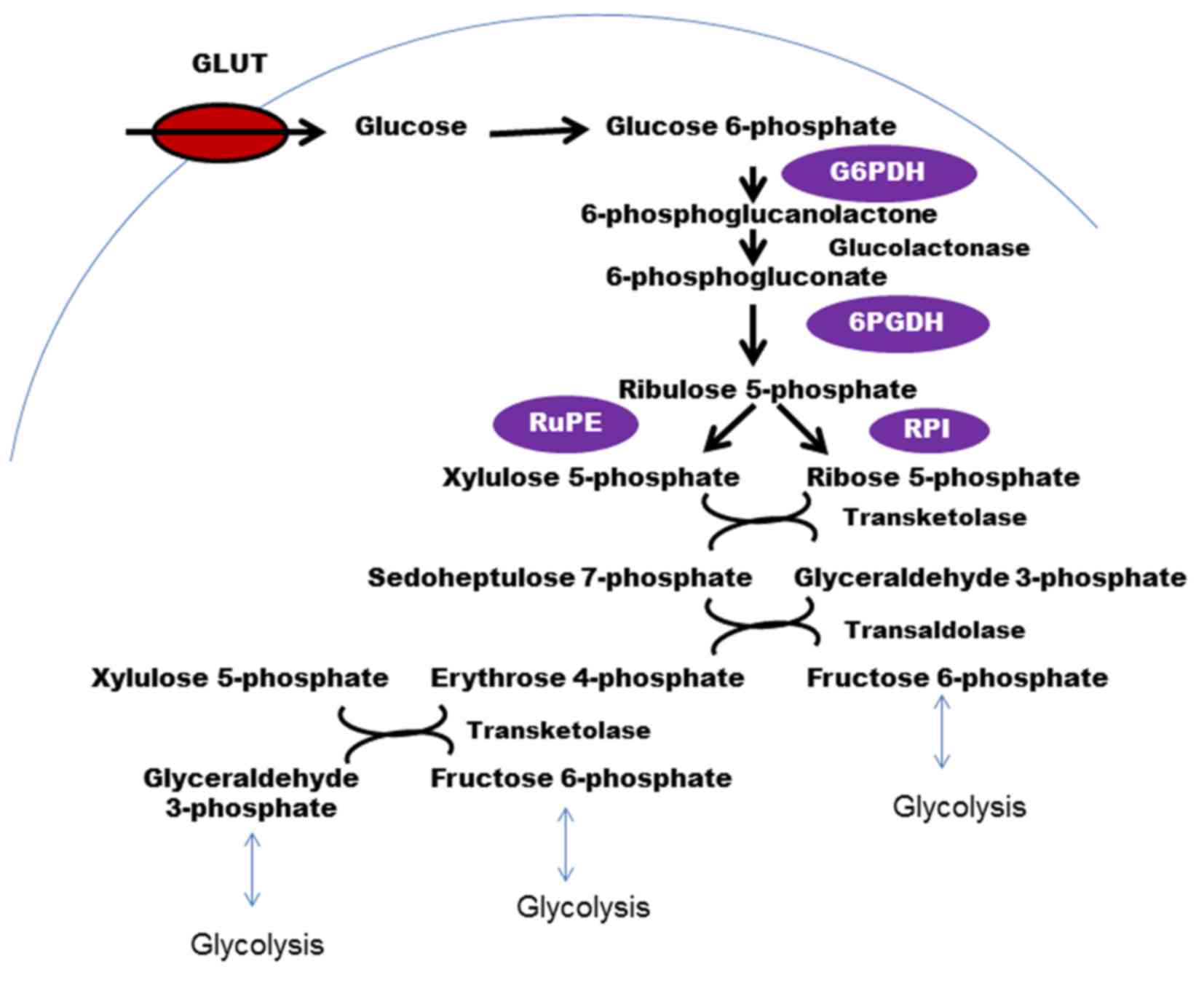 Patra KC and Hay N: The pentose phosphate pathway and cancer. Trends Biochem Sci. 39:347–354. 2014. View Article : Google Scholar : PubMed/NCBI | |