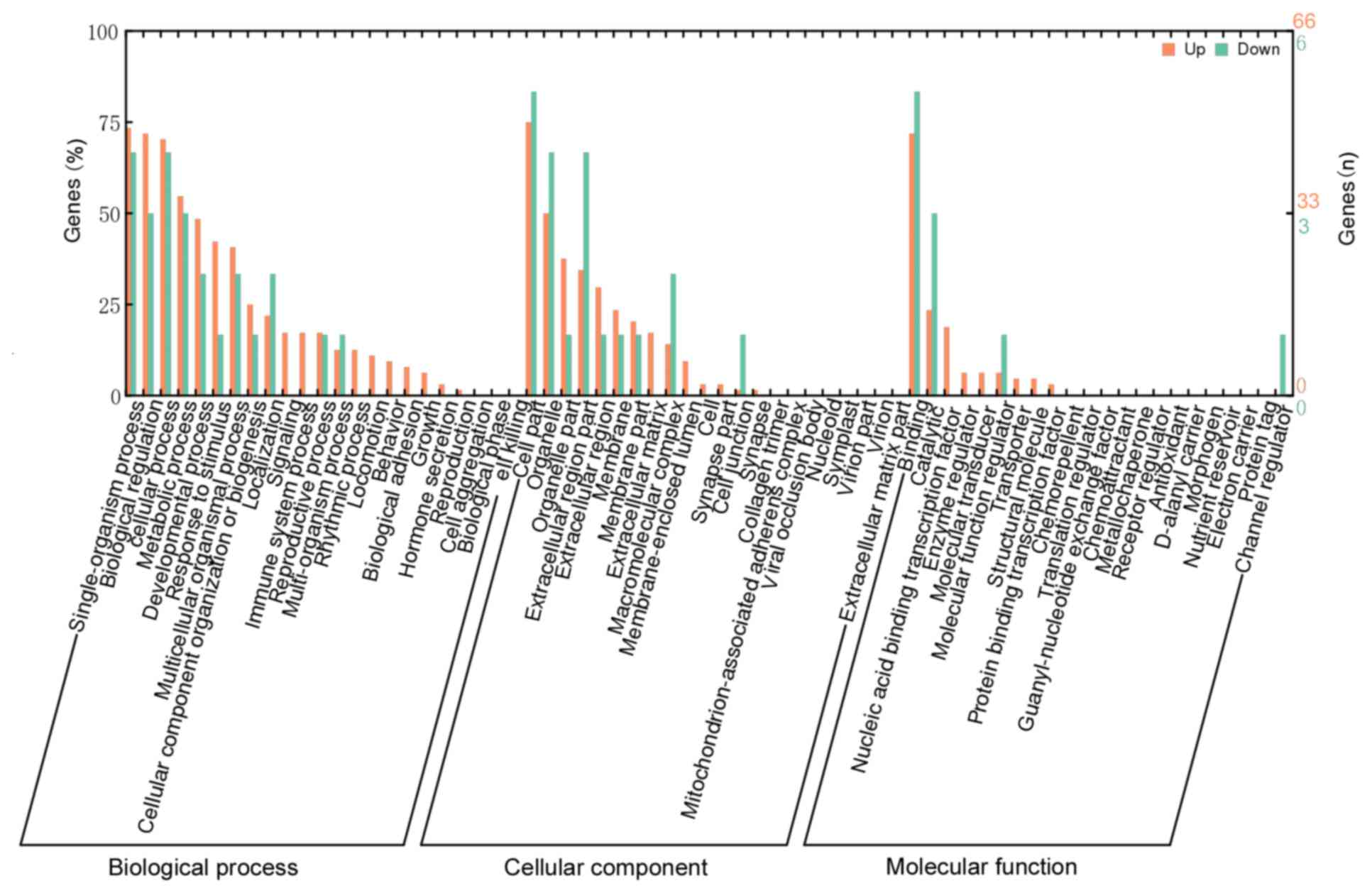 To exploit the functional roles of DEGs, DAVID (https://david.ncifcrf.gov/home.jsp) was used, which integrated the Gene Ontology (GO) and Kyoto Encyclopedia of Genes and Genomes (KEGG) databases to analyze biological function. Finally, the enrichment values of the GO terms, obtained using the hypergeometric test, were considered significantly enriched when the q-value (adjusted as a P-value) was 0.05.
