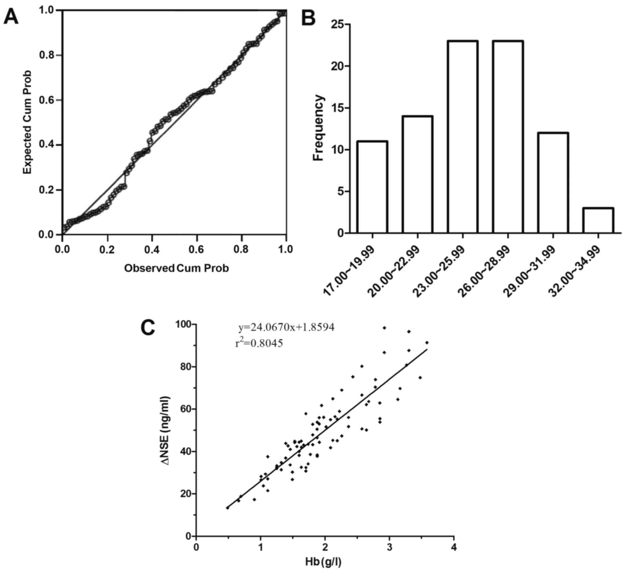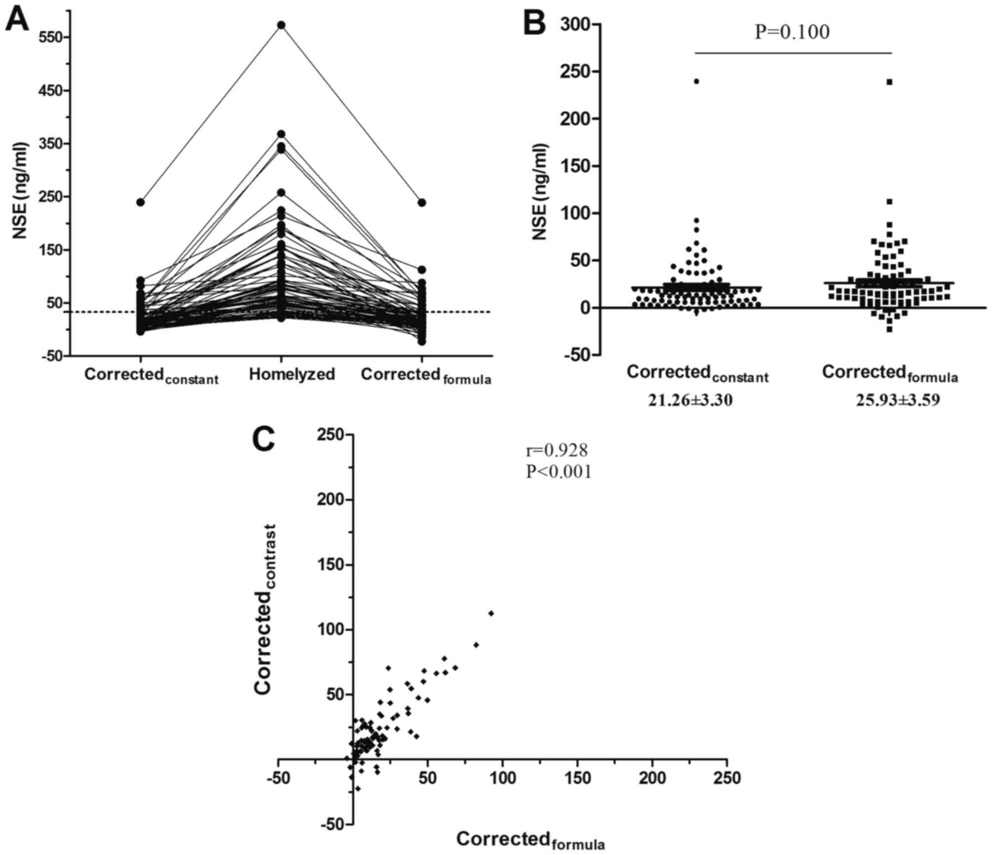 Tolan NV, Vidal-Folch N, Algeciras-Schimnich A, Singh RJ and Grebe SK: Individualized correction of neuron-specific enolase (NSE) measurement in hemolyzed serum samples. Clin Chim Acta. 424:216–221. 2013. View Article : Google Scholar : PubMed/NCBI