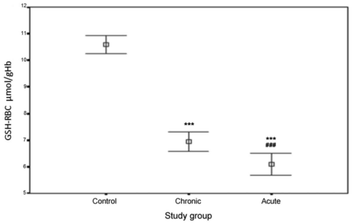 Andersen HR, Nielsen JB, Nielsen F and Grandjean P: Antioxidative enzyme activities in human erythrocytes. Clin Chem. 43:562–568. 1997.PubMed/NCBI
