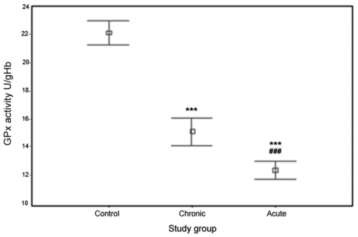 Holley A, Pitman J, Miller J, Harding S and Larsen P: Glutathione peroxidase activity and expression levels are significantly increased in acute coronary syndromes. J Investig Med. 65:919–925. 2017. View Article : Google Scholar : PubMed/NCBI
