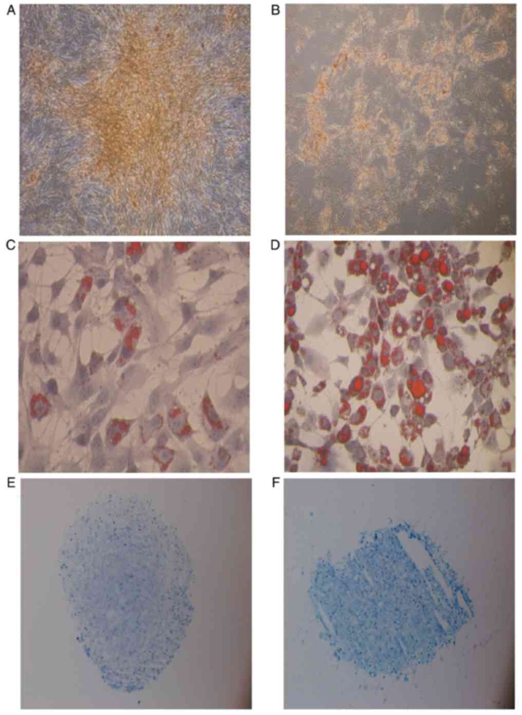 Vater C, Kasten P and Stiehler M: Culture media for the differentiation of mesenchymal stromal cells. Acta Biomater. 7:463–477. 2011.PubMed/NCBI View Article : Google Scholar | |