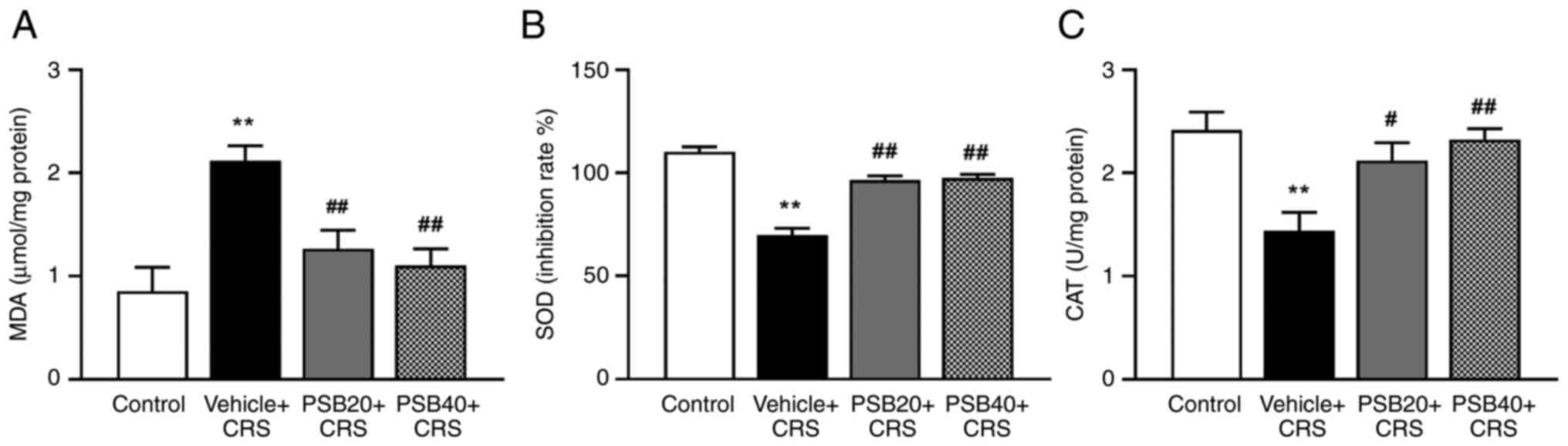 Sahin E and Gümüşlü S: Immobilization stress in rat tissues: Alterations in protein oxidation, lipid peroxidation and antioxidant defense system. Comp Biochem Physiol C Toxicol Pharmacol. 144:342–347. 2007.PubMed/NCBI View Article : Google Scholar | |