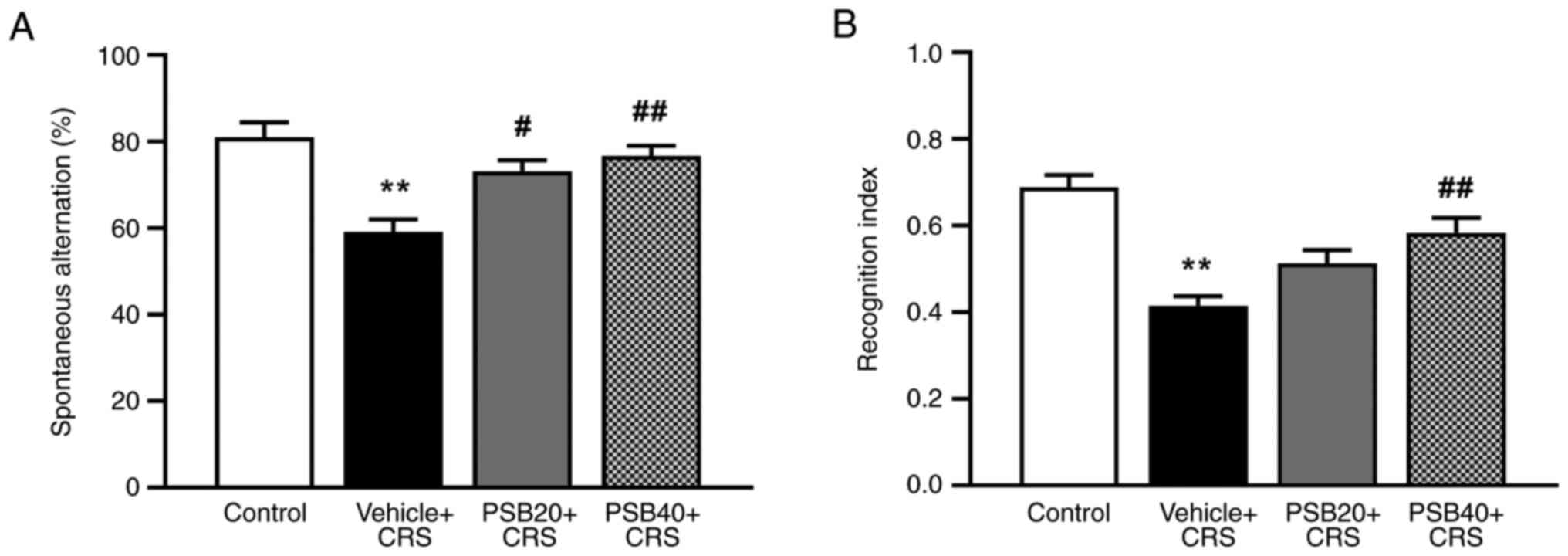 Conrad CD, Galea LA, Kuroda Y and McEwen BS: Chronic stress impairs rat spatial memory on the Y maze, and this effect is blocked by tianeptine pretreatment. Behav Neurosci. 110:1321–1334. 1996.PubMed/NCBI View Article : Google Scholar | |