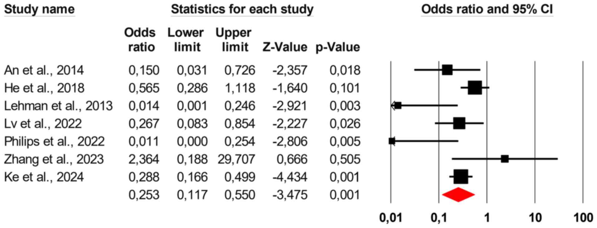 Walker E, Hernandez AV and Kattan MW: Meta-analysis: Its strengths and limitations. Cleve Clin J Med. 75:431–439. 2008.PubMed/NCBI View Article : Google Scholar | |