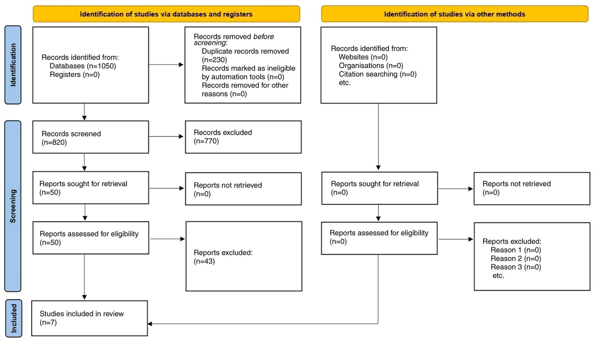 Page MJ, McKenzie JE, Bossuyt PM, Boutron I, Hoffmann TC, Mulrow CD, Shamseer L, Tetzlaff JM, Akl EA, Brennan SE, et al: The PRISMA 2020 statement: An updated guideline for reporting systematic reviews. BMJ. 372(n71)2021.PubMed/NCBI View Article : Google Scholar | |