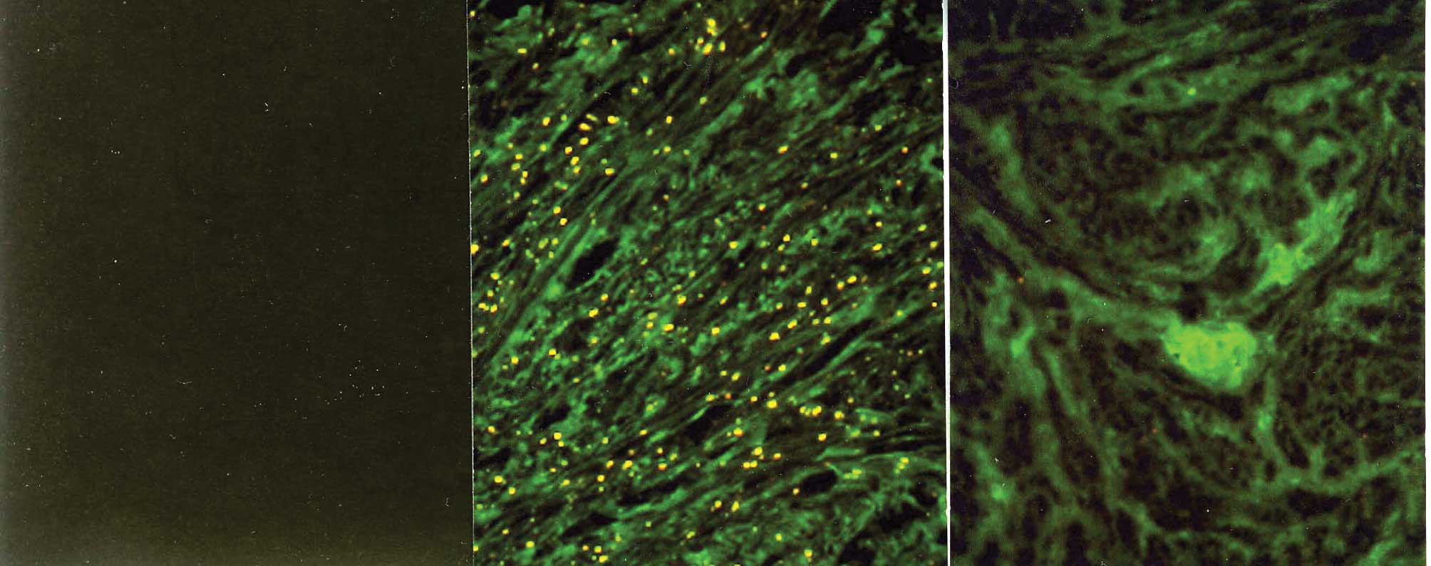 Immunostaining of human uterine myometrium and myoma with antibodies for type I, III and IV collagens.