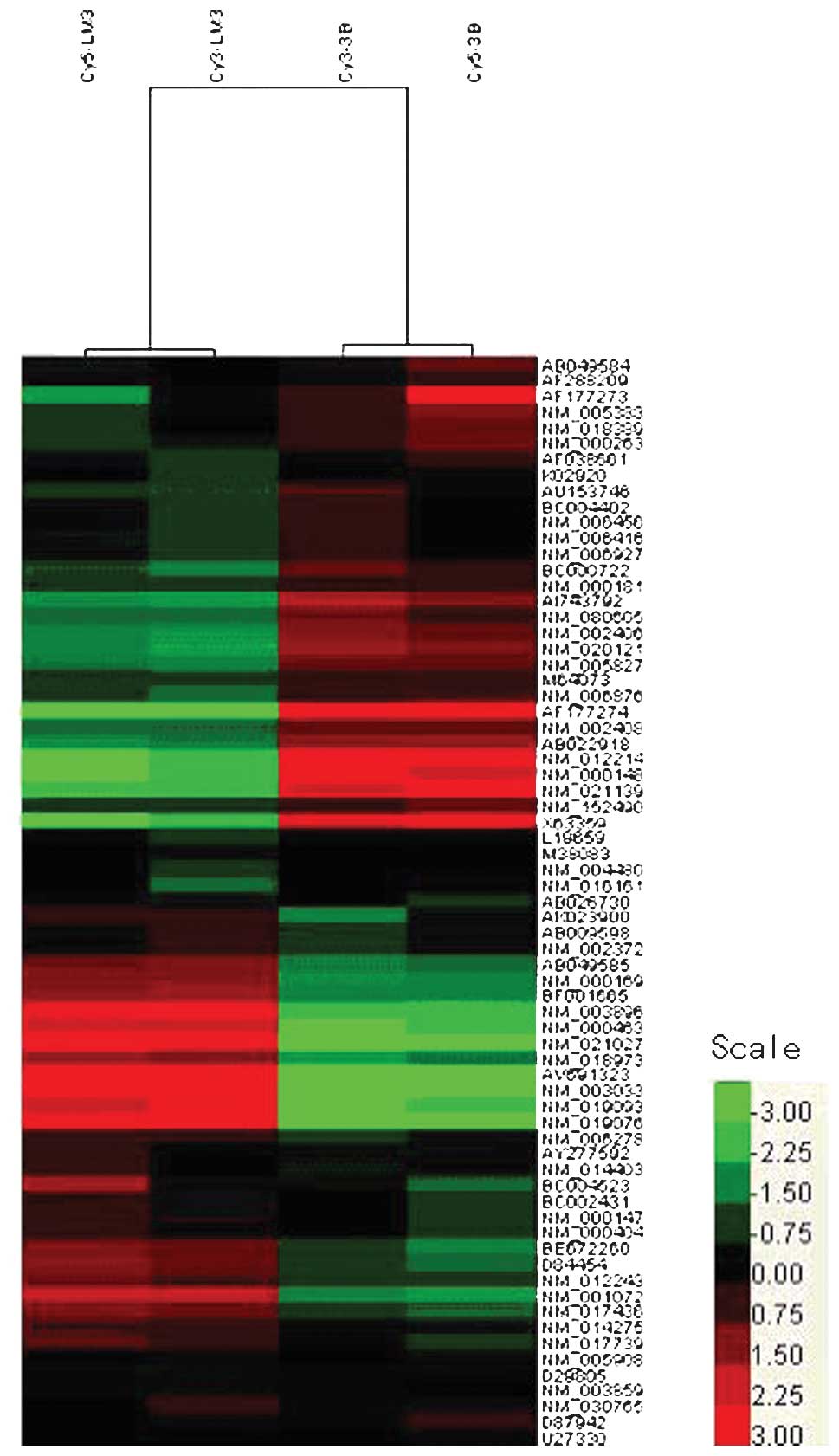 Kang X, Wang N, Pei C, Sun L, Sun R, Chen J and Liu Y: Glycan-related gene expression signatures in human metastatic hepatocellular carcinoma cells. Exp Ther Med 3: 415-422, 2012.