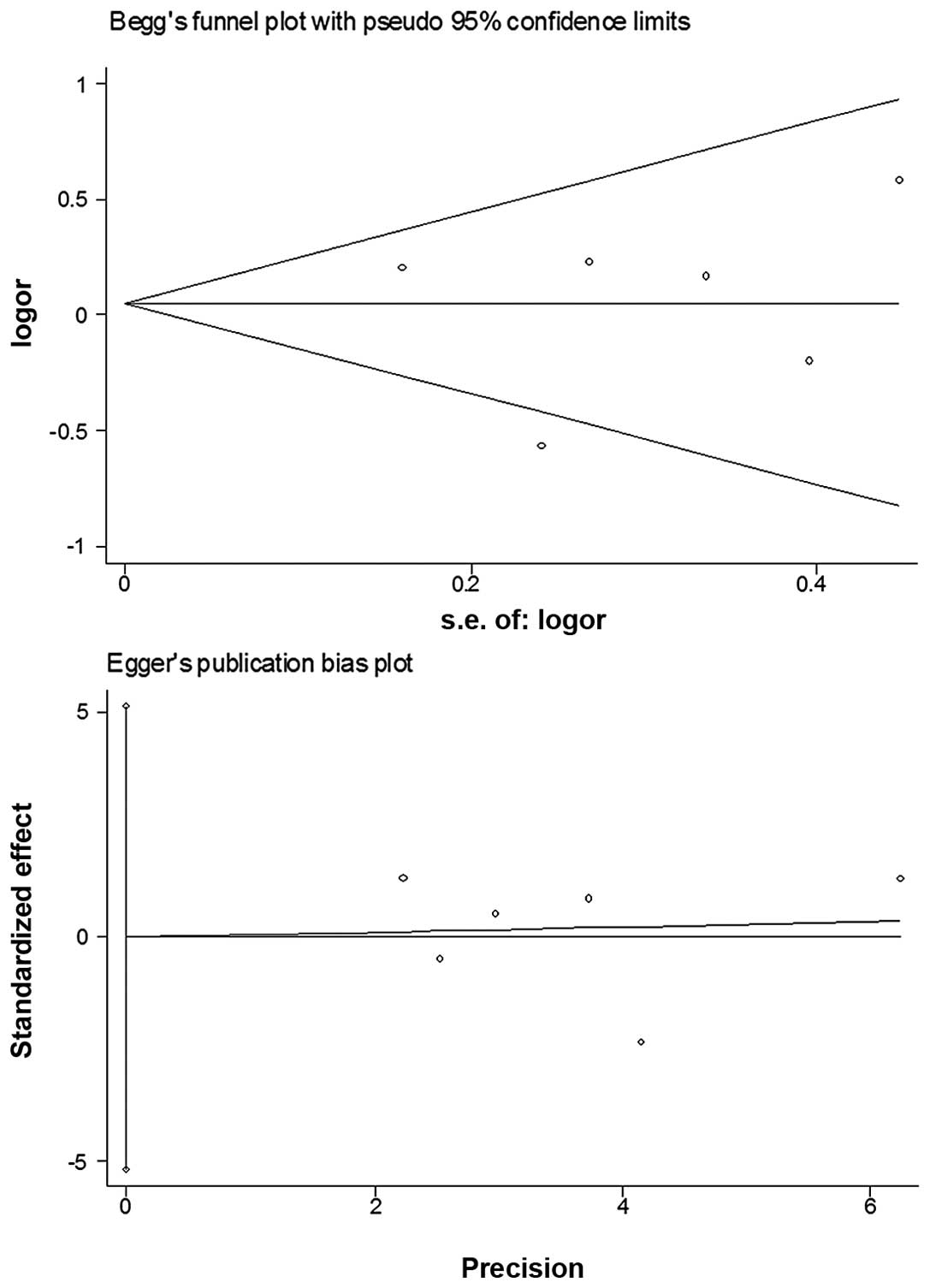 Egger M, Davey Smith G, Schneider M and Minder C: Bias in meta-analysis detected by a simple, graphical test. BMJ. 315:629–634. 1997. View Article : Google Scholar : PubMed/NCBI | |
