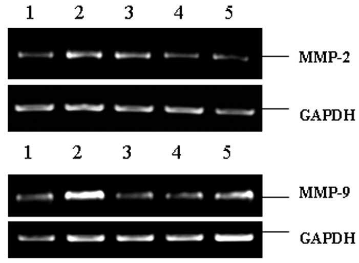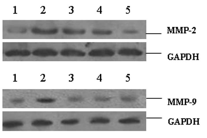 Hu X, Li D, Zhang W, Zhou J, Tang B and Li L: Matrix metalloproteinase-9 expression correlates with prognosis and involved in ovarian cancer cell invasion. Arch Gynecol Obstet. 286:1537–1543. 2012. View Article : Google Scholar : PubMed/NCBI
