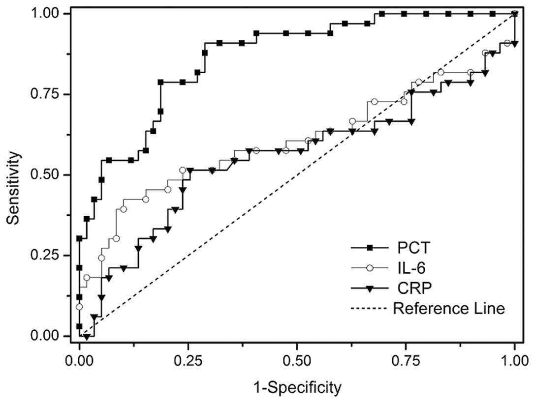 The present study examined 92 patients who received ≥48 h of mechanical ventilation following cardiac surgery. The patient serum levels of PCT, interleukin (IL)-6 and C-reactive protein (CRP) were analyzed using an electrochemiluminescence immunoassay (ECLIA). The incidence and type of postoperative noninfectious complications in the patients were also recorded. In addition, the diagnostic values of serum levels of PCT, IL-6 and CRP were analyzed by linear regression.