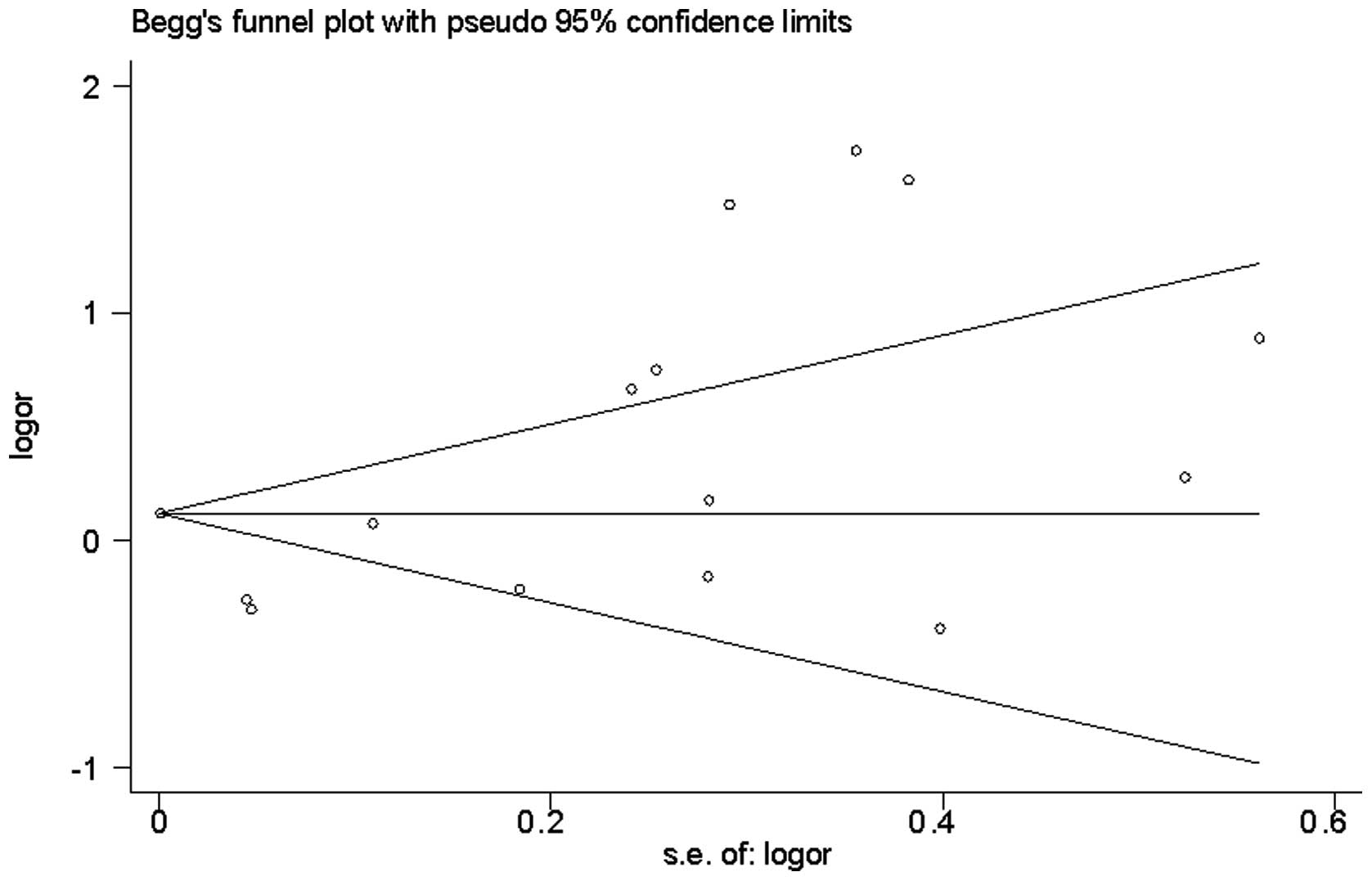 Liver disease of various etiologies, including HCV infection, has been implicated as a cause of DM in several previous studies (18–20). A hypothesis that there may be an association between HBV infection and DM incidence has been proposed (8,9); however, the results remain controversial. In order to resolve this controversy, 15 studies were selected for the present meta-analysis, the aim of which was to comprehensively evaluate the association between HBV infection and the prevalence of DM.