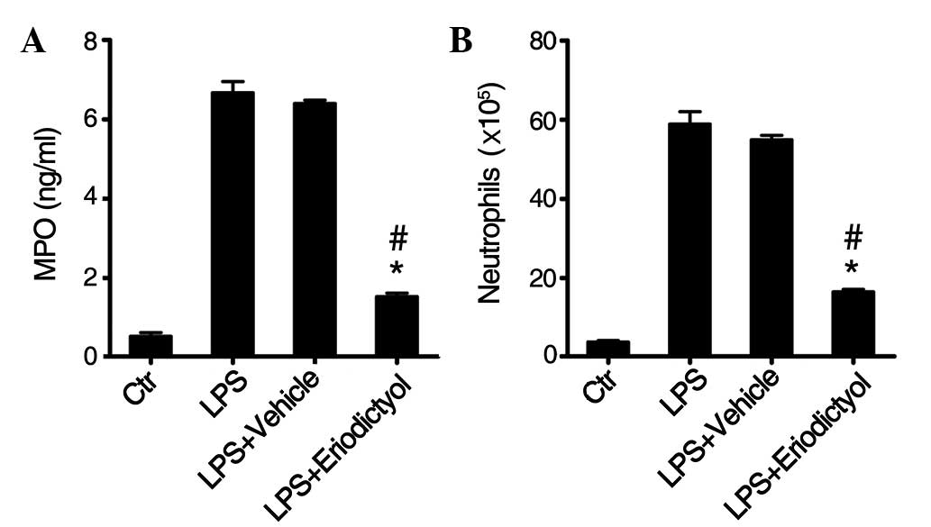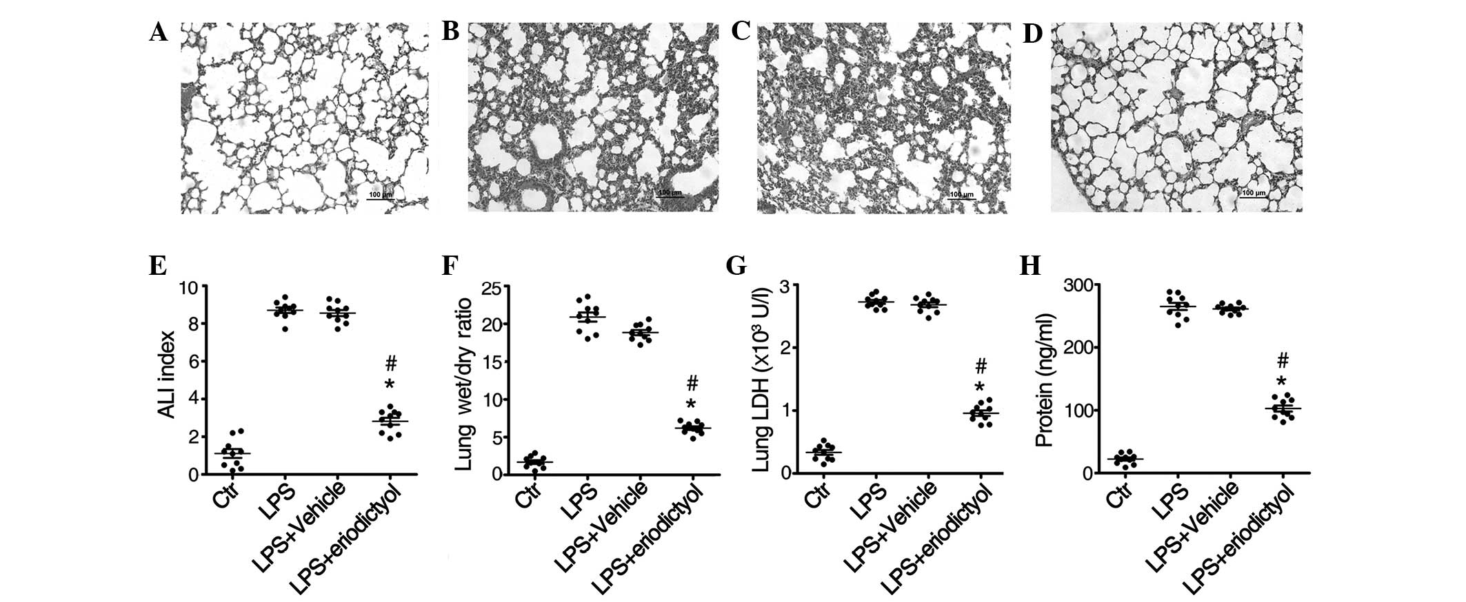 Eriodictyol, a plant flavonoid, attenuates LPS‑induced acute lung injury through its antioxidative and anti‑inflammatory activity