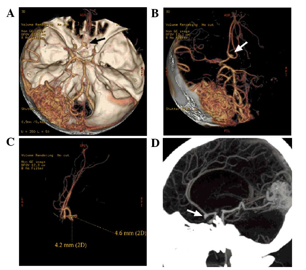 Yang S, Yu JL, Wang HL, Wang B and Luo Q: Endovascular embolization of distal anterior choroidal artery aneurysms associated with moyamoya disease. A report of two cases and a literature review. Interv Neuroradiol. 16:433–441. 2010.PubMed/NCBI | |