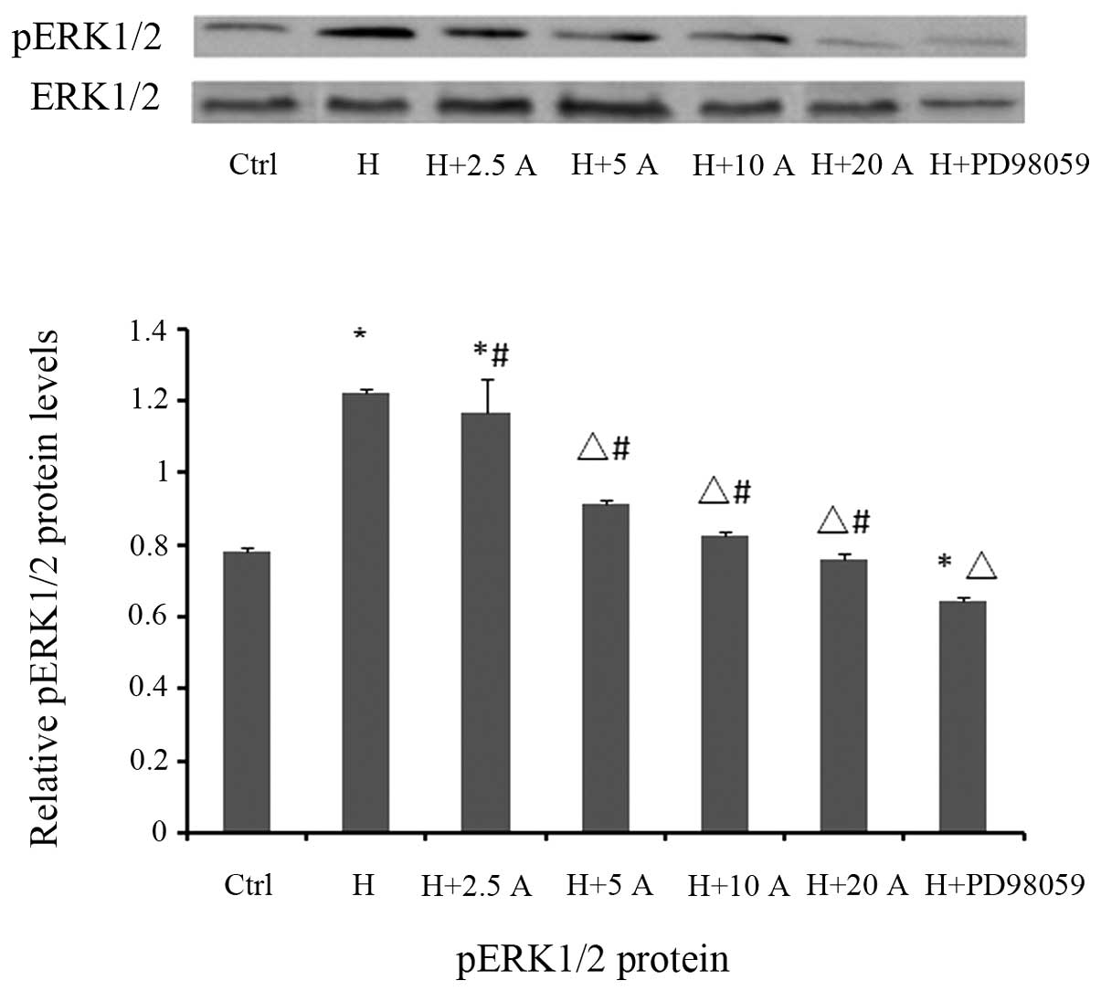 Zhang DX, Ren YS and Liu B: Effect of allicin on angiotensin II-induced vascular smooth muscle cell proliferation. Zhong Guo Xiandai Yi Xue Za Zhi. 15:2136–2138. 2005.(In Chinese). | |