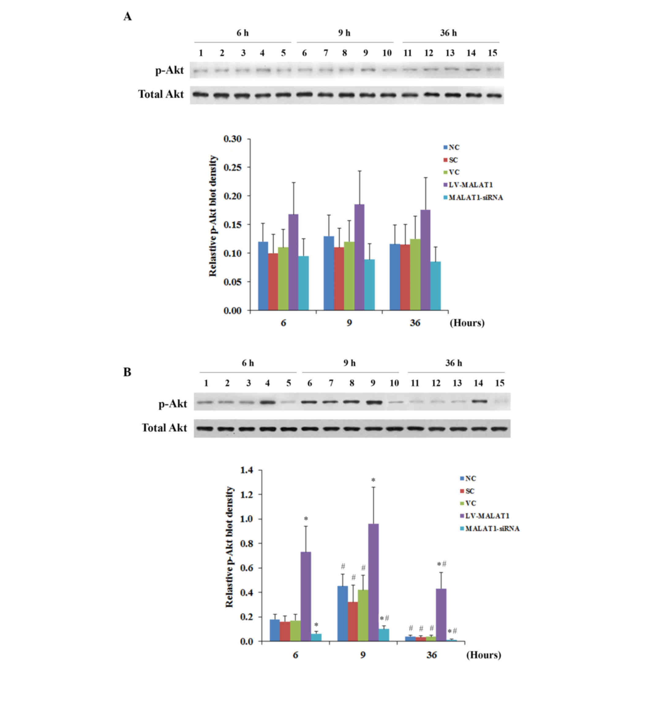 Dong Y, Liang G, Yuan B, Yang C, Gao R and Zhou X: MALAT1 promotes the proliferation and metastasis of osteosarcoma cells by activating the PI3K/Akt pathway. Tumour Biol. 36:1477–1486. 2015. View Article : Google Scholar : PubMed/NCBI | |
