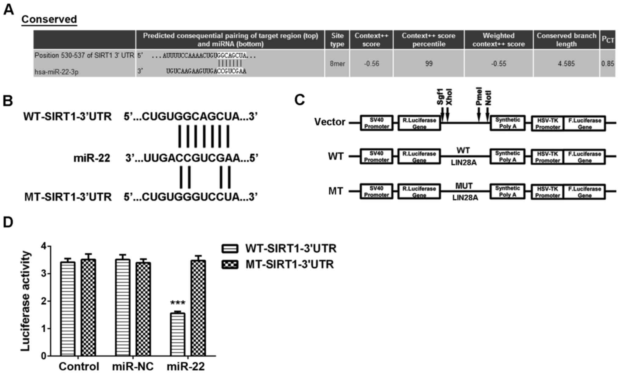Bioinformatics analysis was performed to predict the potential target genes of miR-22 using Targetscan 3.1 online software (http://www.targetscan.org), according to the manufacture's instruction.