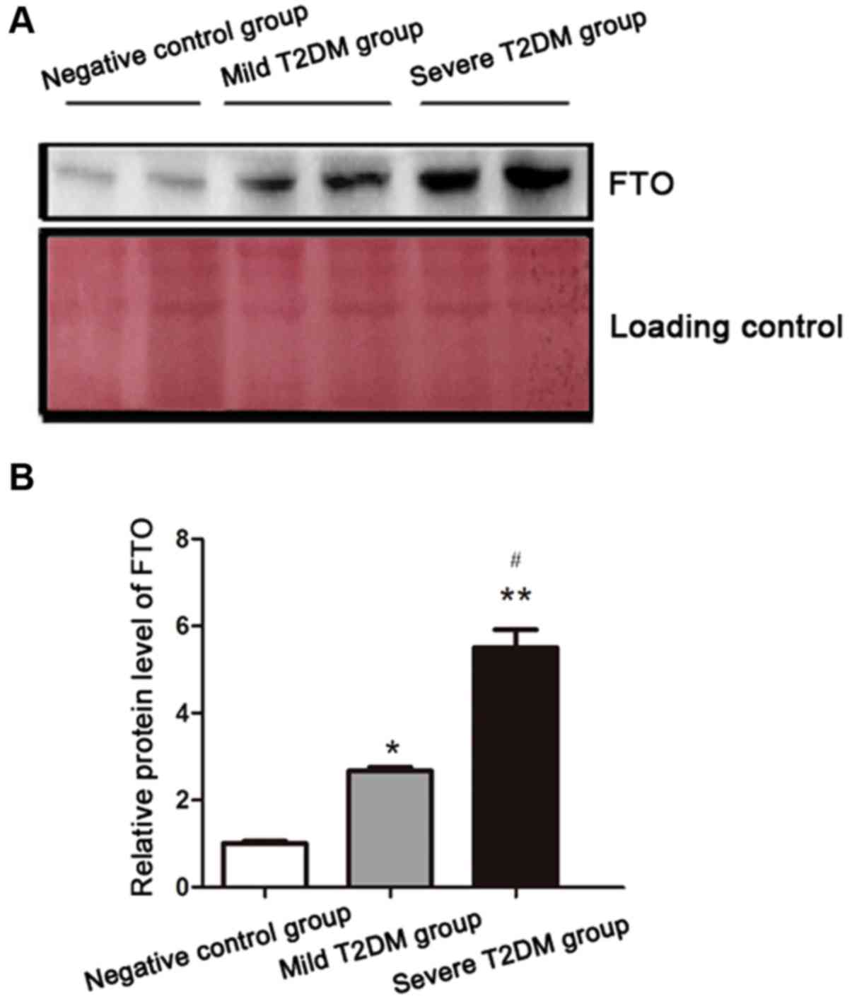 We further explored the relationship between FTO and T2DM severity. FTO protein levels after treatment was significantly reduced relative to before treatment (Fig. 3).