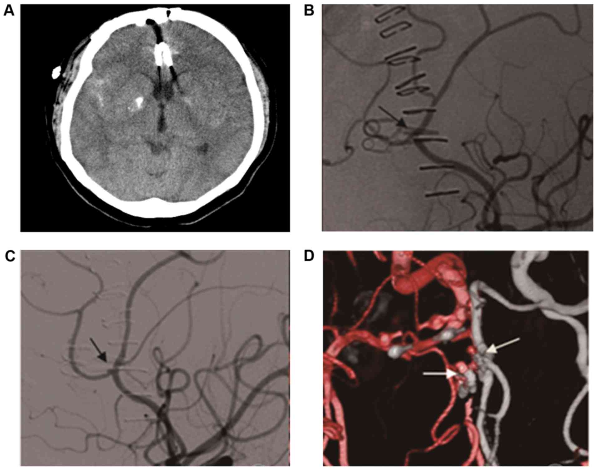 Otani N, Takasato Y, Masaoka H, Hayakawa T, Yoshino Y, Yatsushige H, Sumiyoshi K, Miyawaki H, Aoyagi C, Takeuchi S and Suzuki G: Clinical features and surgical outcomes of ruptured distal anterior cerebral artery aneurysms in 20 consecutively managed patients. J Clin Neurosci. 16:802–806. 2009. View Article : Google Scholar : PubMed/NCBI | |