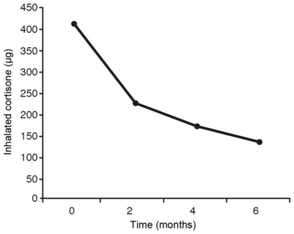 Inclusion criteria were as follows: Any age and gender, regular asthma since at least 2 years prior to starting the study, treatment with corticosteroids (oral or inhaled) for at least two years.