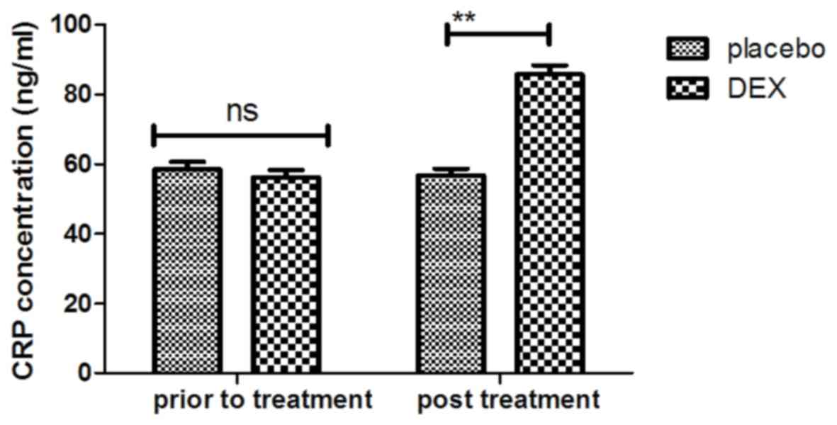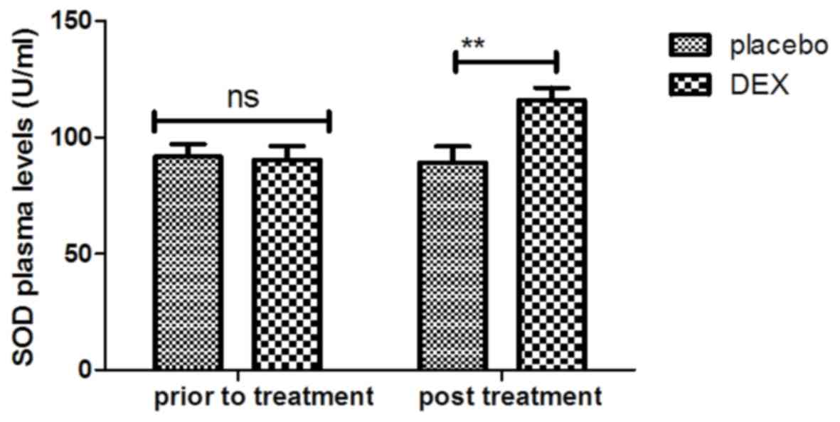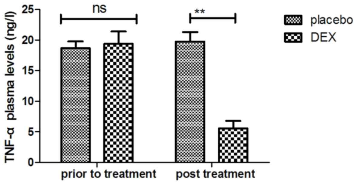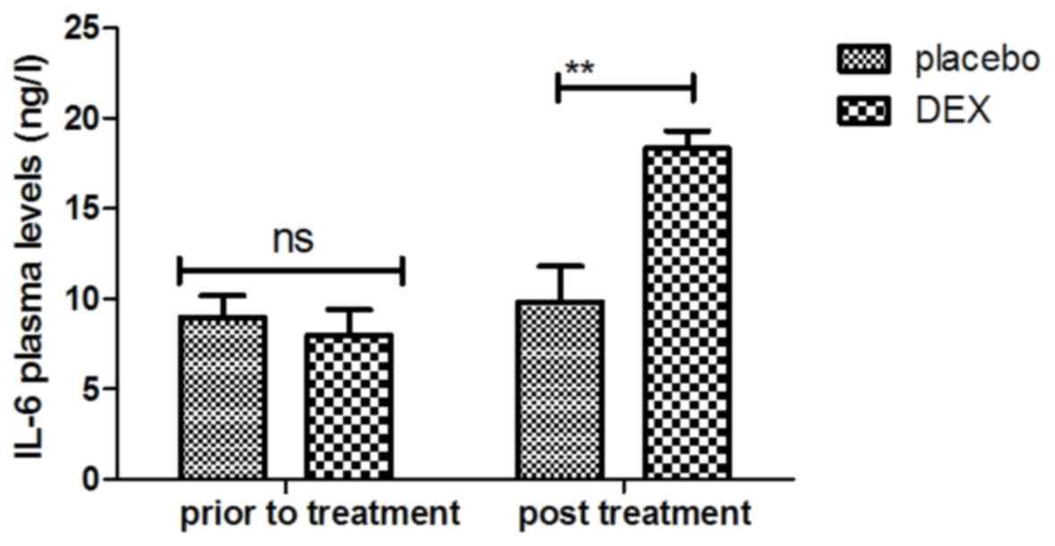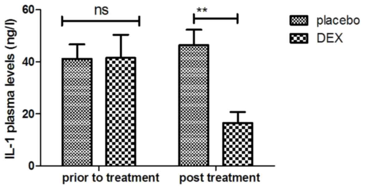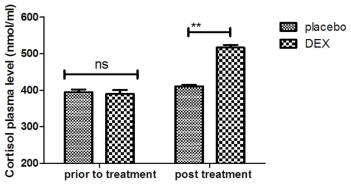 Valentin LS, Pereira VF, Pietrobon RS, Schmidt AP, Oses JP, Portela LV, Souza DO, Vissoci JR, Luz VF, Trintoni LM, et al: Effects of single low dose of dexamethasone before noncardiac and nonneurologic surgery and general anesthesia on postoperative cognitive dysfunction-a phase III double blind, randomized clinical trial. PLoS One. 11:e01523082016. View Article : Google Scholar : PubMed/NCBI