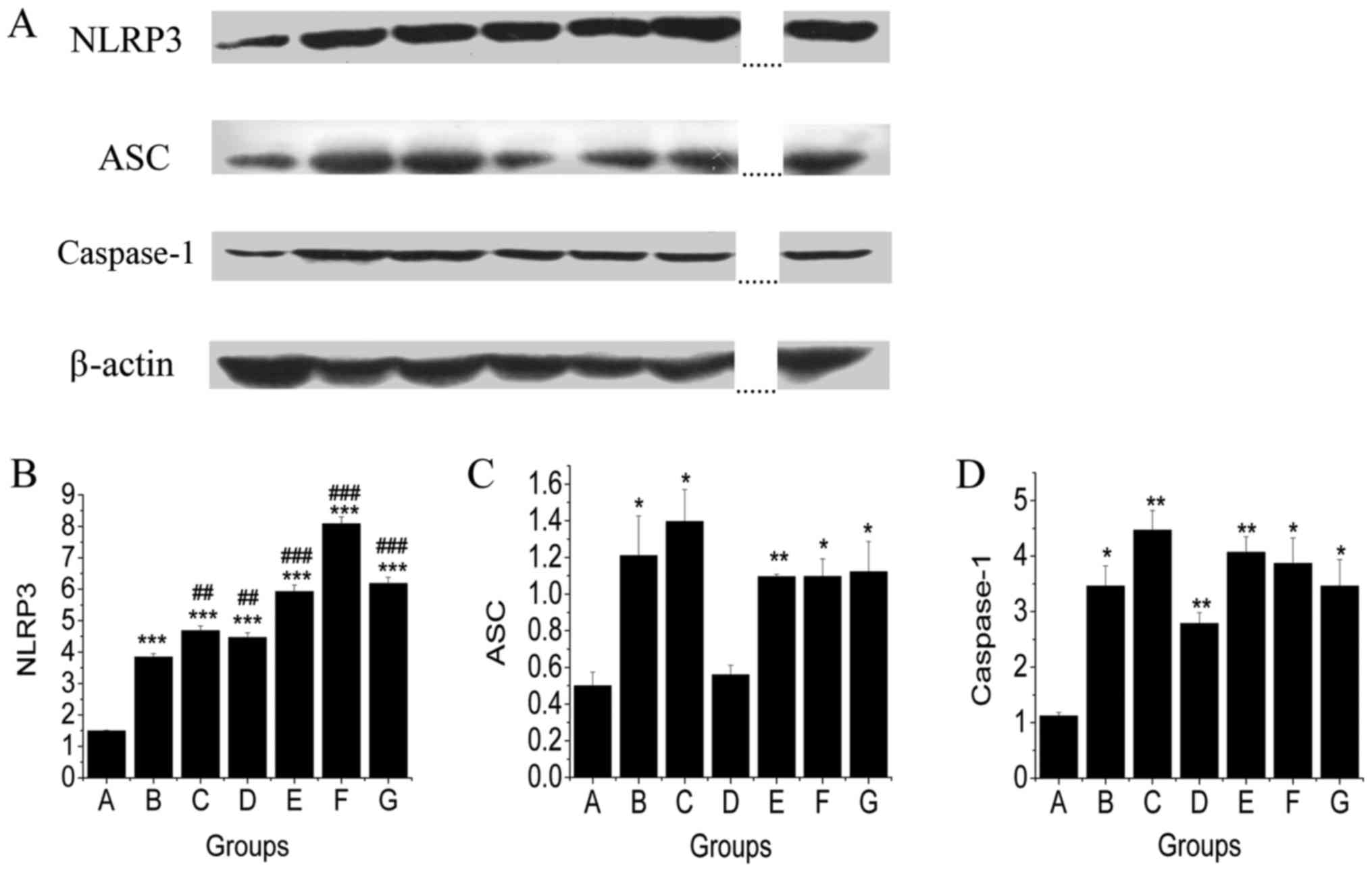 Strowig T, Henao-Mejia J, Elinav E and Flavell R: Inflammasomes in health and disease. Nature. 481:278–286. 2012. View Article : Google Scholar : PubMed/NCBI | |
