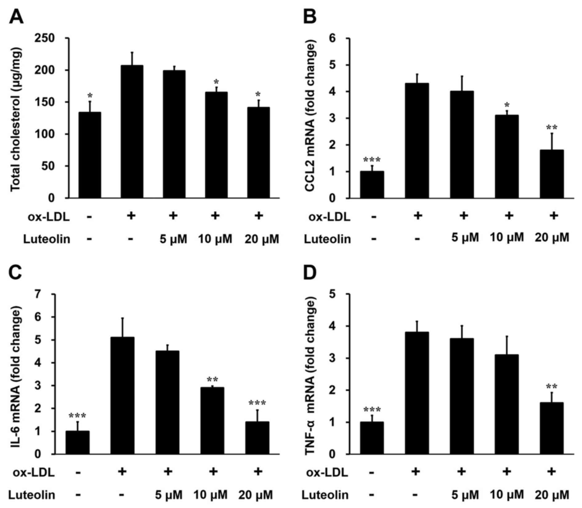 Kim MS, Kim DS, Kim HS, Kang SW and Kang YH: Inhibitory effects of luteolin on transendothelial migration of monocytes and formation of lipid-laden macrophages. Nutrition. 28:1044–1054. 2012. View Article : Google Scholar : PubMed/NCBI