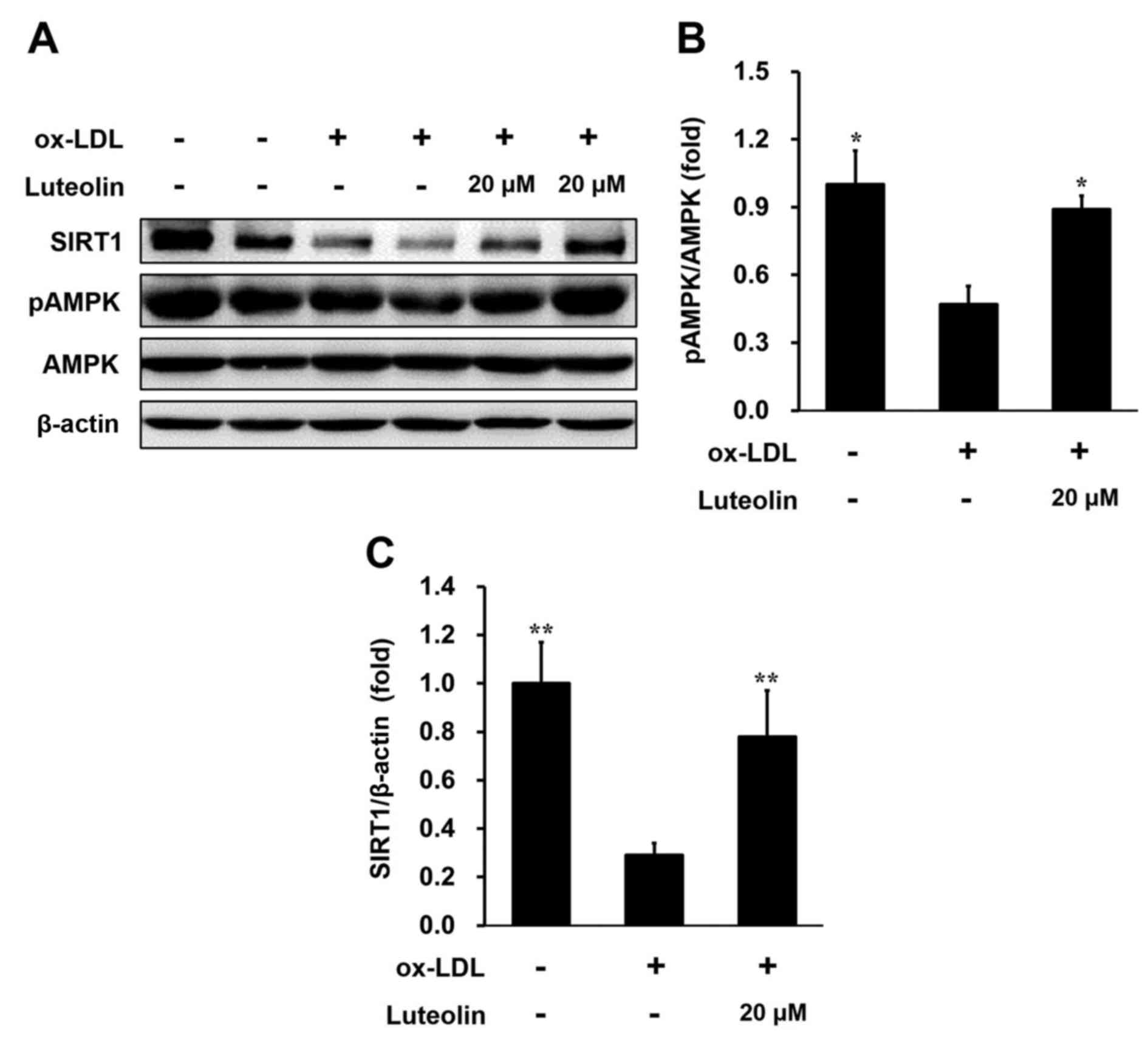 Li, J., Dong, J., Ren, Y., Zhu, J., Cao, J., Zhang, J., & Pan, L. (2018). Luteolin decreases atherosclerosis in LDL receptor‑deficient mice via a mechanism including decreasing AMPK‑SIRT1 signaling in macrophages. Experimental and Therapeutic Medicine, 16, 2593-2599. https://doi.org/10.3892/etm.2018.6499
