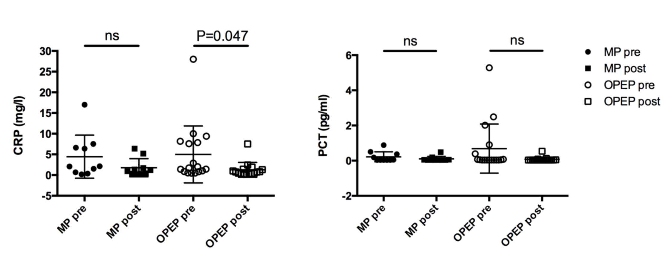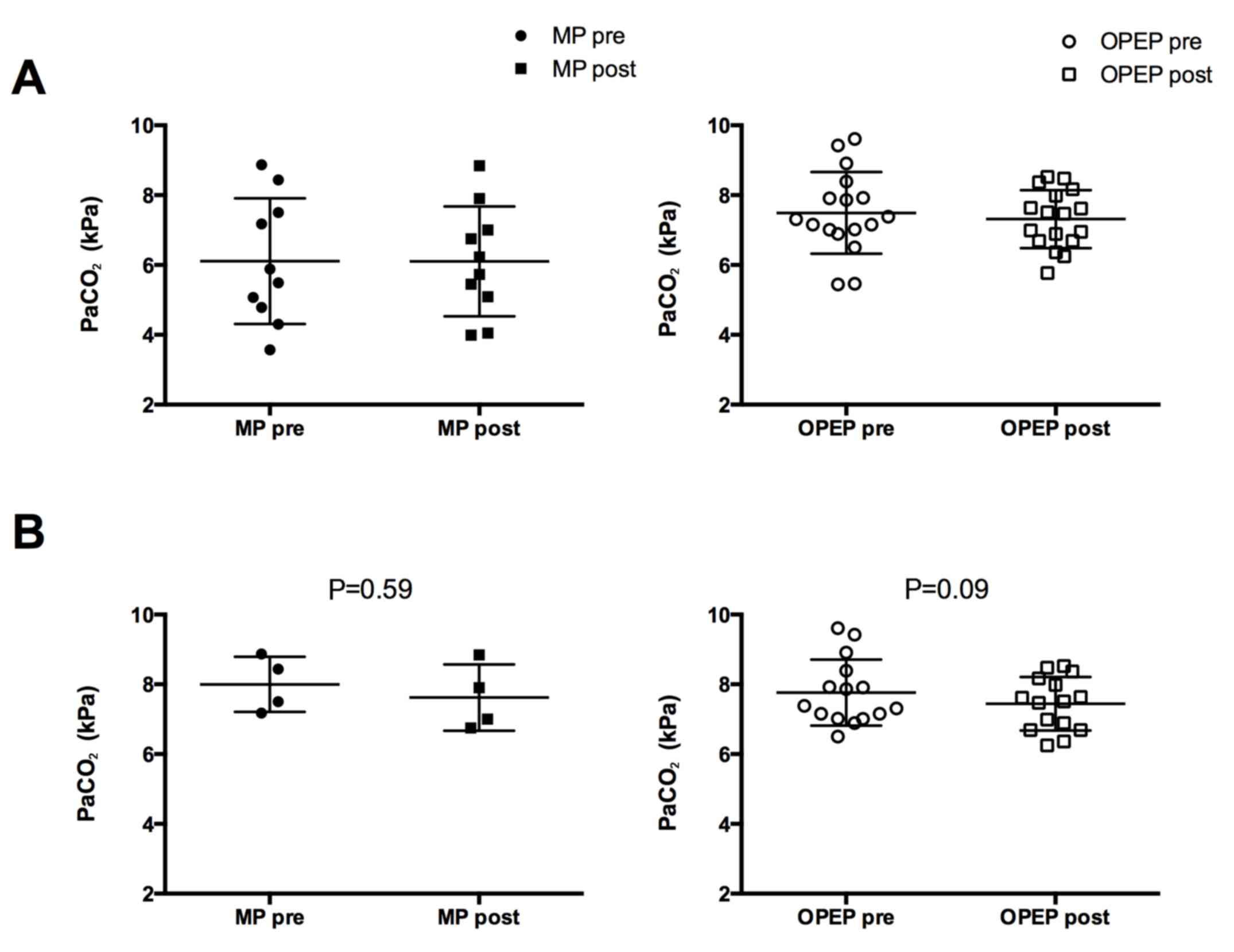 Nicolini A, Mascardi V, Grecchi B, Ferrari-Bravo M, Banfi P and Barlascini C: Comparison of effectiveness of temporary positive expiratory pressure versus oscillatory positive expiratory pressure in severe COPD patients. Clin Respir J. 12:1274–1282. 2018. View Article : Google Scholar : PubMed/NCBI