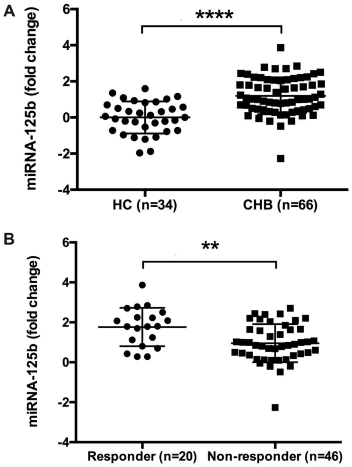 Baseline serum miR‑125b levels predict virologic response to nucleos(t)ide analogue treatment in patients with HBeAg‑positive chronic hepatitis B