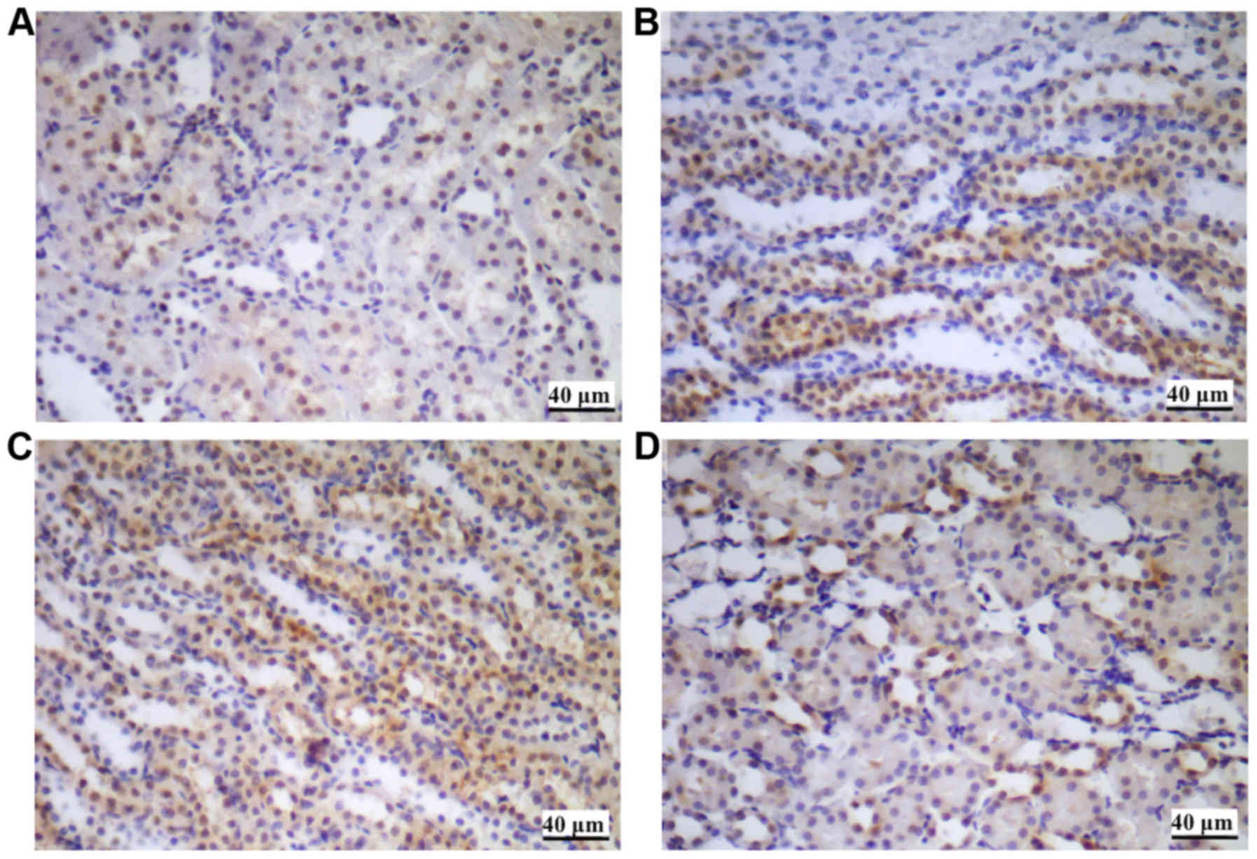Wu H, Chen G, Wyburn KR, Yin J, Bertolino P, Eris JM, Alexander SI, Sharland AF and Chadban SJ: TLR4 activation mediates kidney ischemia/reperfusion injury. J Clin Invest. 117:2847–2859. 2007. View Article : Google Scholar : PubMed/NCBI | |