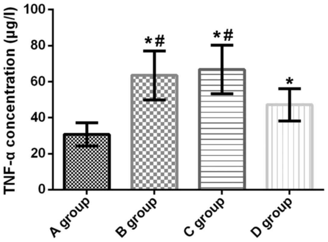 of inflammatory factors including plasma tumor necrosis factor-α in