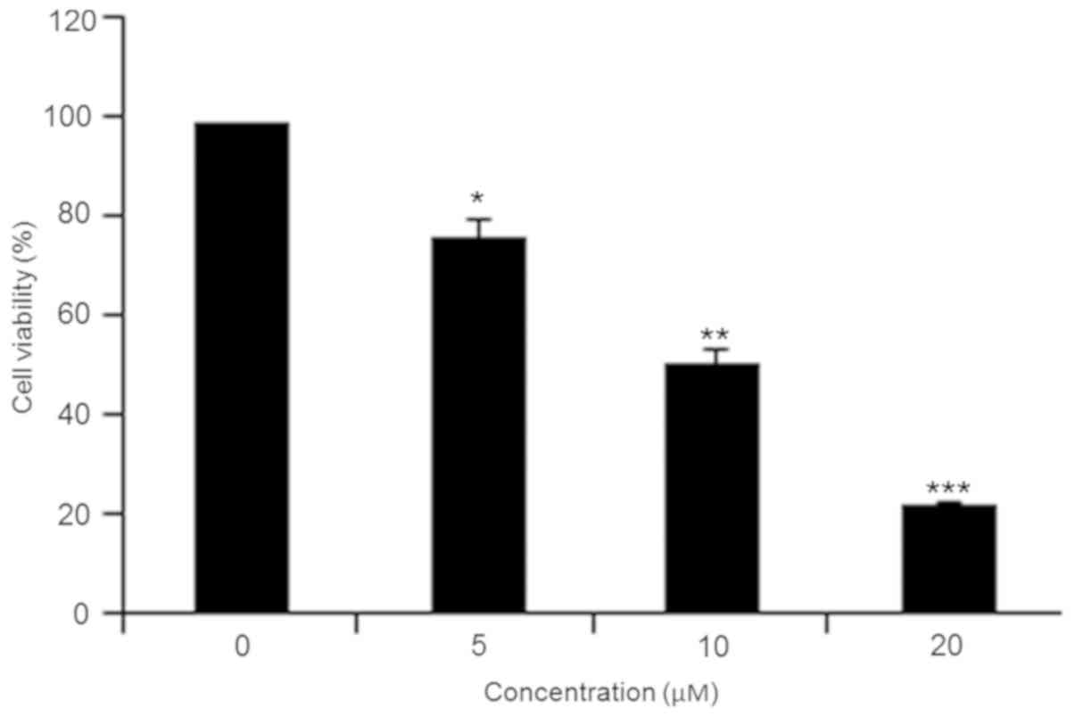 Azuma M, Tamatani T, Ashida Y, Takashima R, Harada K and Sato M: Cisplatin induces apoptosis in oral squamous carcinoma cells by the mitochondria-mediated but not the NF-kappaB-suppressed pathway. Oral Oncol. 39:282–289. 2003. View Article : Google Scholar : PubMed/NCBI