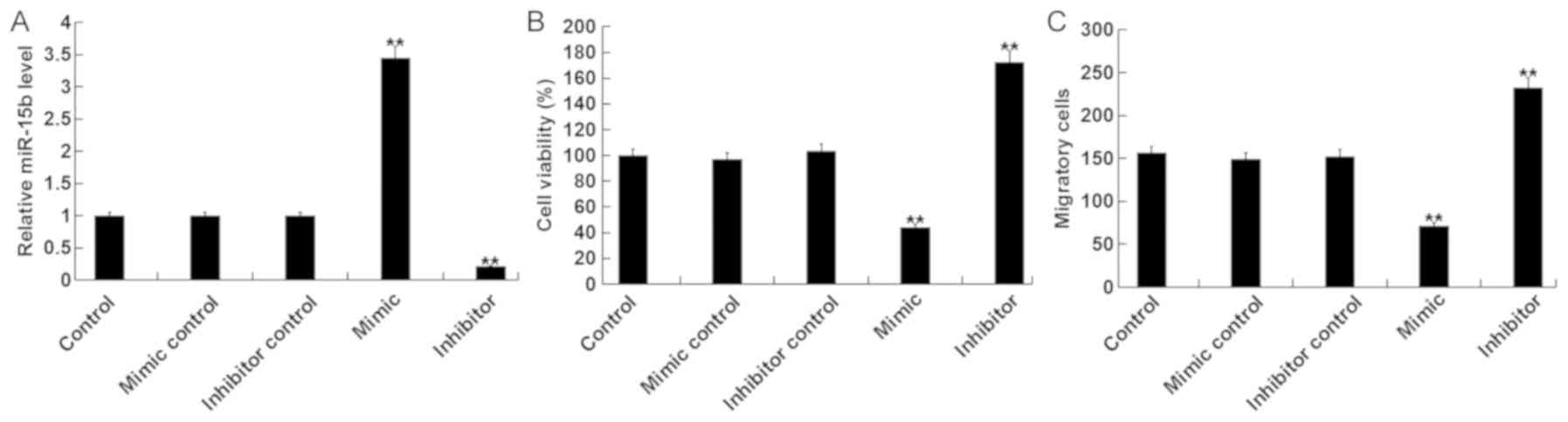 W, Wang K, Song Y, Tu J, Li S, et al: MicroRNA-15b silencing