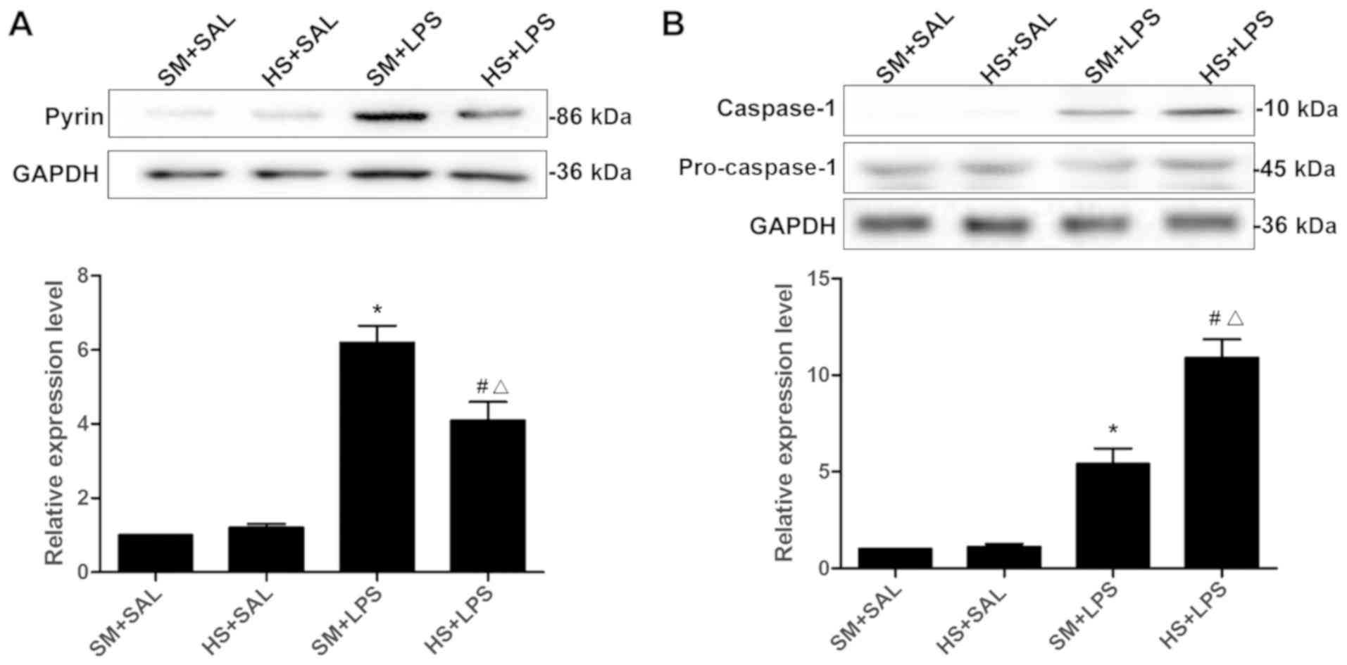 Chae JJ, Komarow HD, Cheng J, Wood G, Raben N, Liu PP and Kastner DL: Targeted disruption of pyrin, the FMF protein, causes heightened sensitivity to endotoxin and a defect in macrophage apoptosis. Mol Cell. 11:591–604. 2003. View Article : Google Scholar : PubMed/NCBI