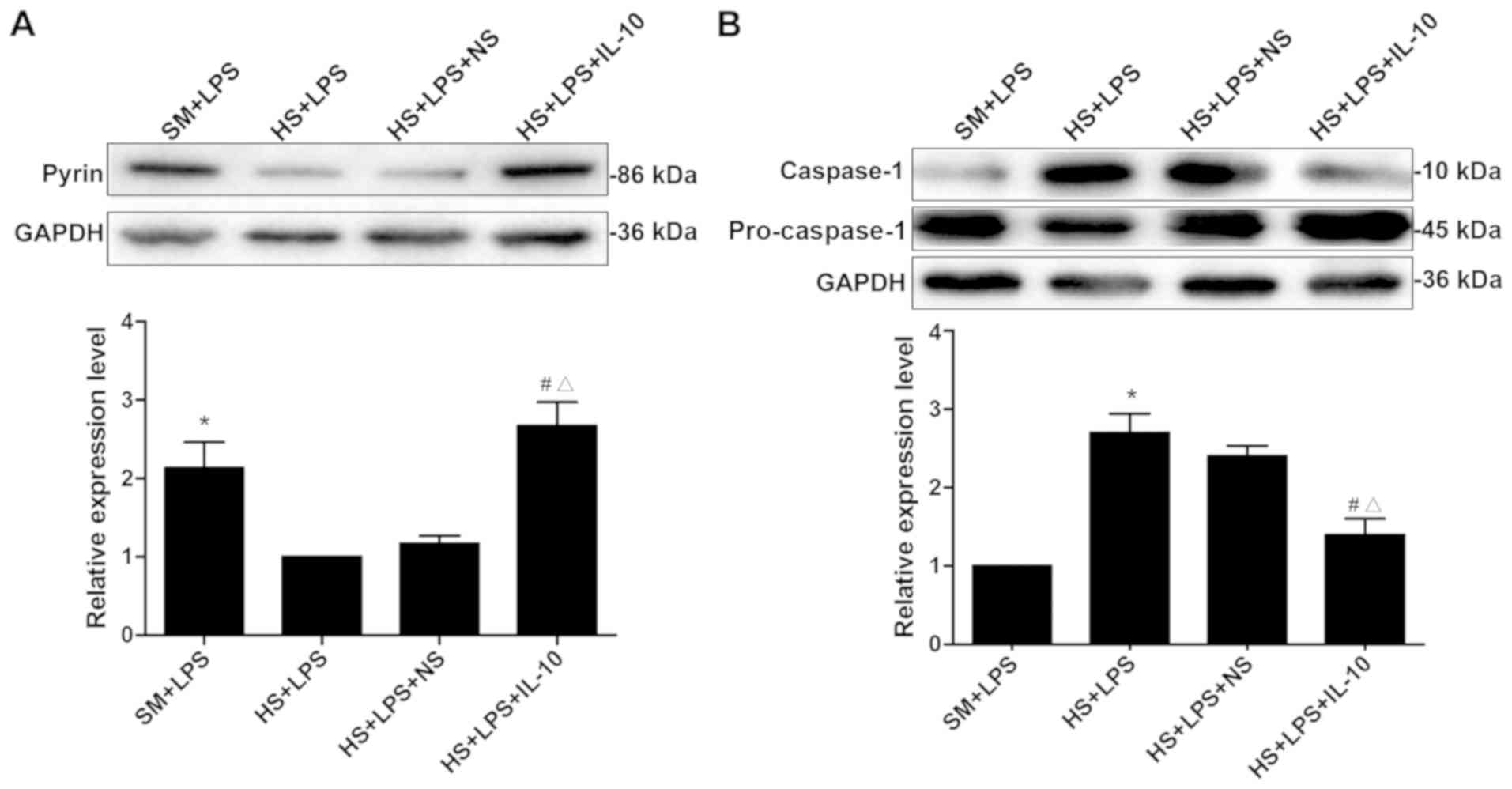 Jin X, Yao Y, Lu X, Xu P, Xia Y and Zhu S: Function and mechanism of pyrin and IL‑10 in the regulation of the inflammasome in pulmonary vascular endothelial cells following hemorrhagic shock. Exp Ther Med 18: 1768-1774, 2019.