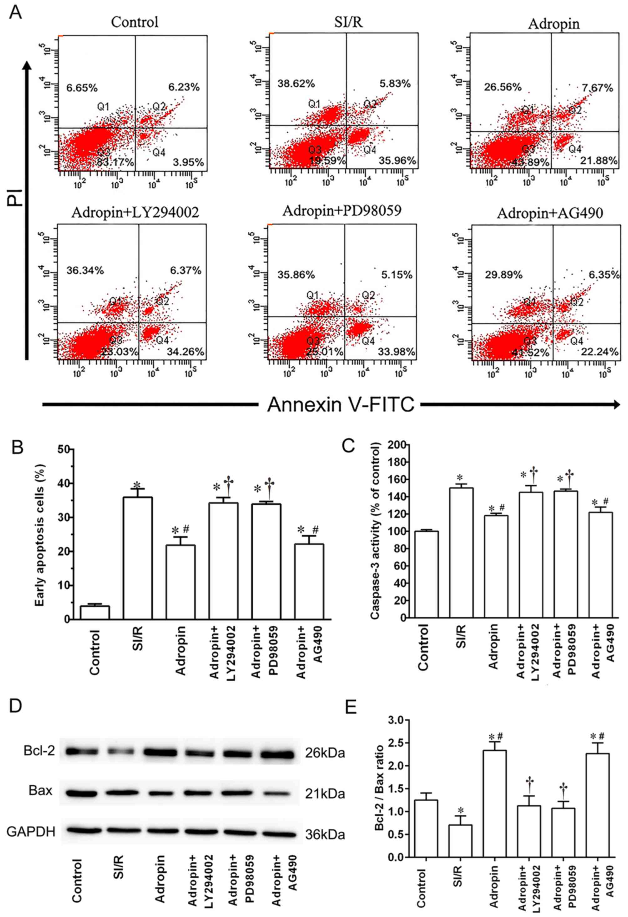 In the current study, a hypoxia/reoxygenation model was established in neonatal rat cardiomyoblast cells (H9c2) to simulate ischemia/reperfusion (SI/R) injury. The effect of adropin on SI/R injury and the mechanisms that govern this effect were subsequently assessed.