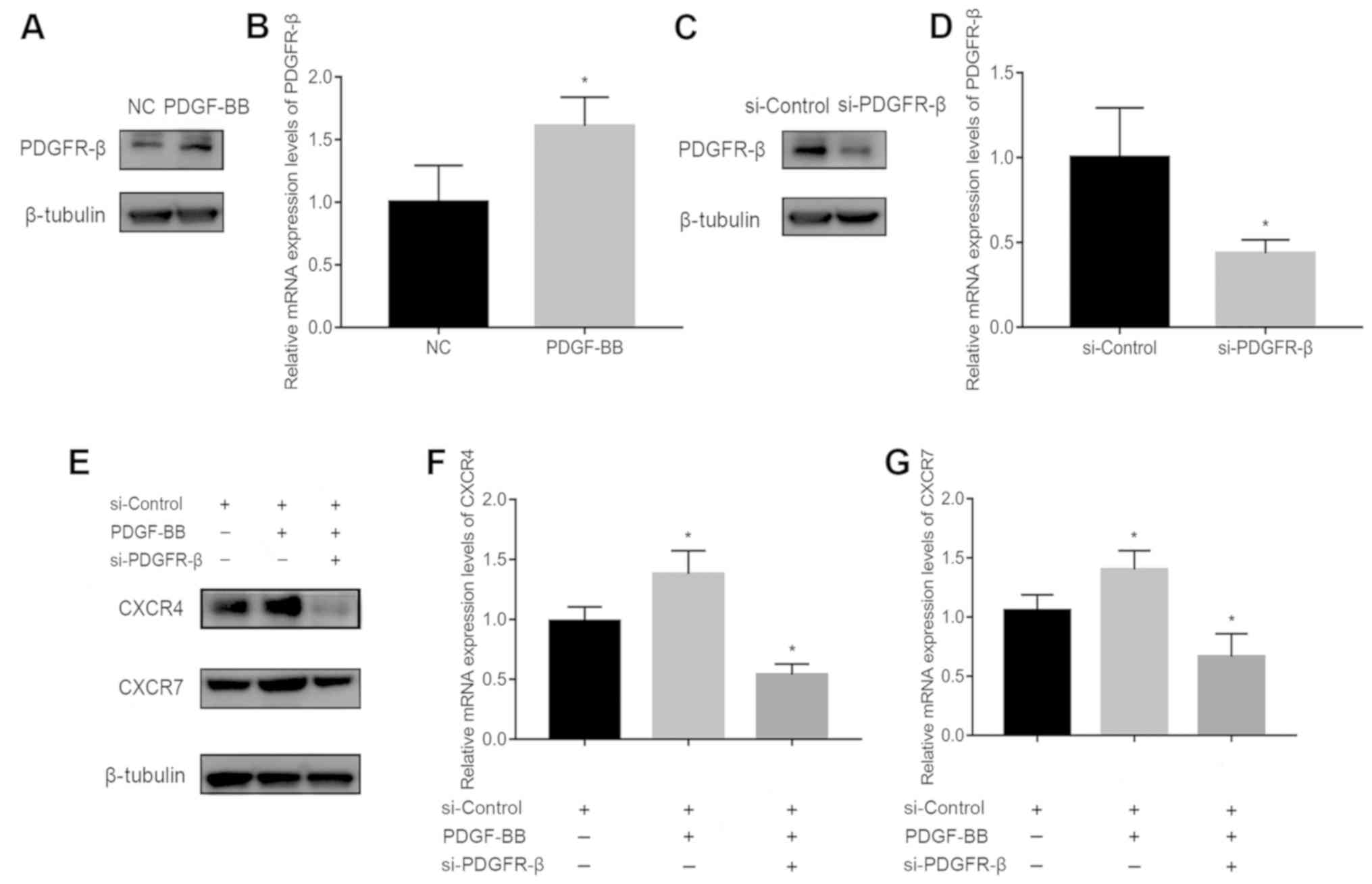 Xiang DN, Feng YF, Wang J, Zhang X, Shen JJ, Zou R and Yuan YZ: Platelet‑derived growth factor‑BB promotes proliferation and migration of retinal microvascular pericytes by up‑regulating the expression of C‑X‑C chemokine receptor types 4. Exp Ther Med 18: 4022-4030, 2019.