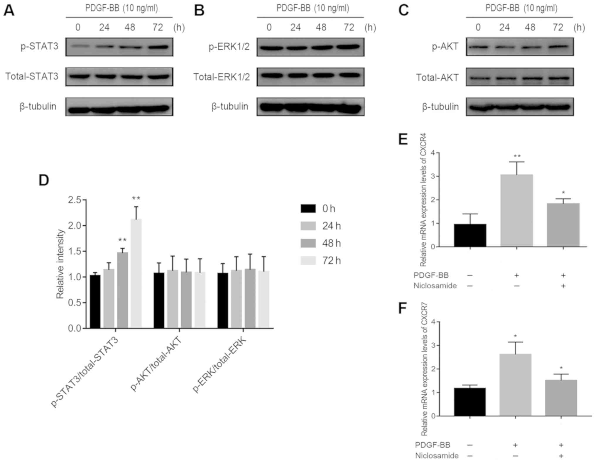 Li L, Xu M, Li X, Lv C, Zhang X, Yu H, Zhang M, Fu Y, Meng H and Zhou J: Platelet-derived growth factor-B (PDGF-B) induced by hypoxia promotes the survival of pulmonary arterial endothelial cells through the PI3K/Akt/Stat3 pathway. Cell Physiol Biochem. 35:441–451. 2015. View Article : Google Scholar : PubMed/NCBI