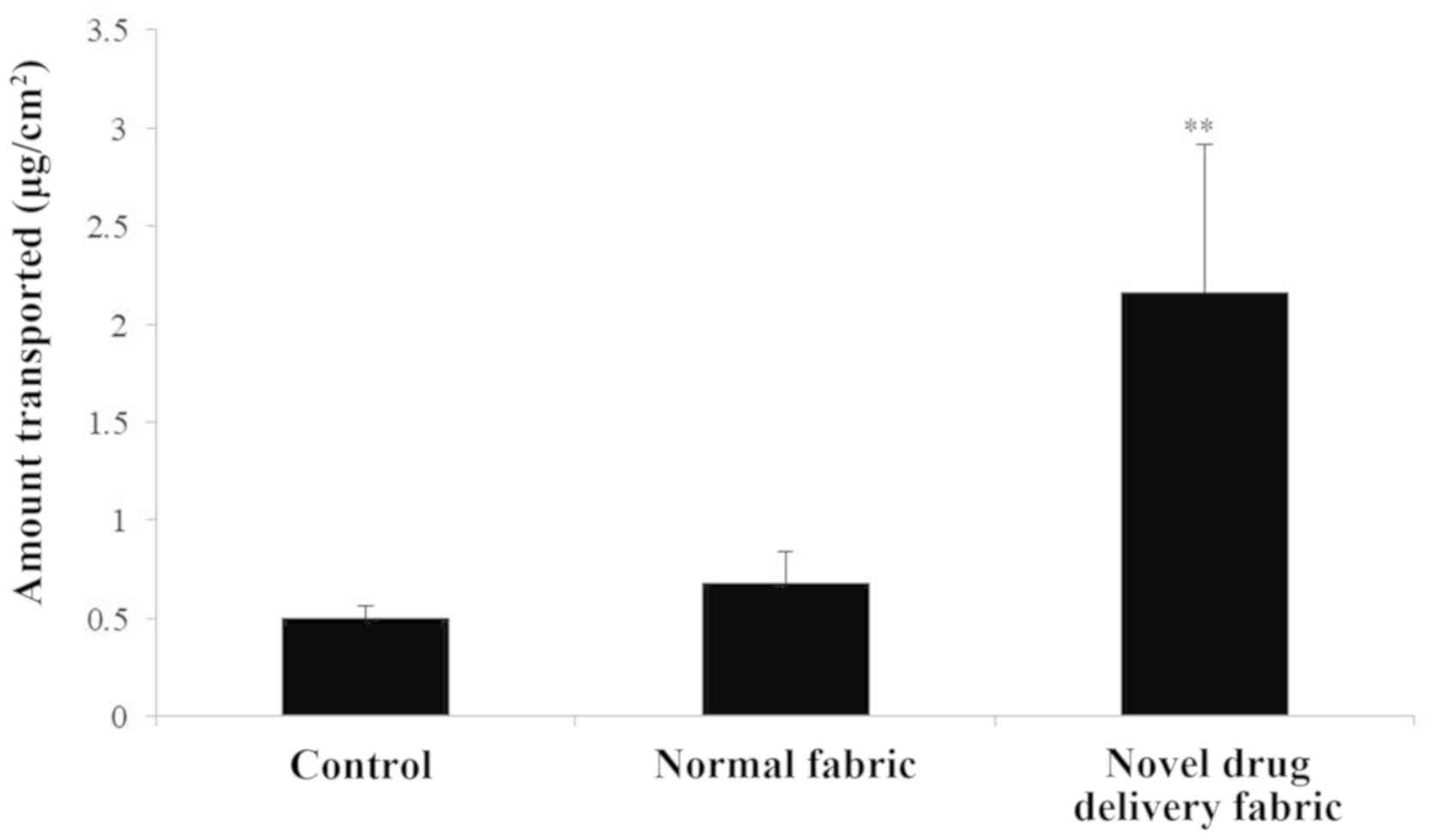 In conclusion, the current study demonstrated that a novel fabric for a transdermal drug delivery system enhances penetration of molecules through the skin. Additional studies investigating the potential of using drug delivery fabrics to administer drugs are required to support the findings of the present study.