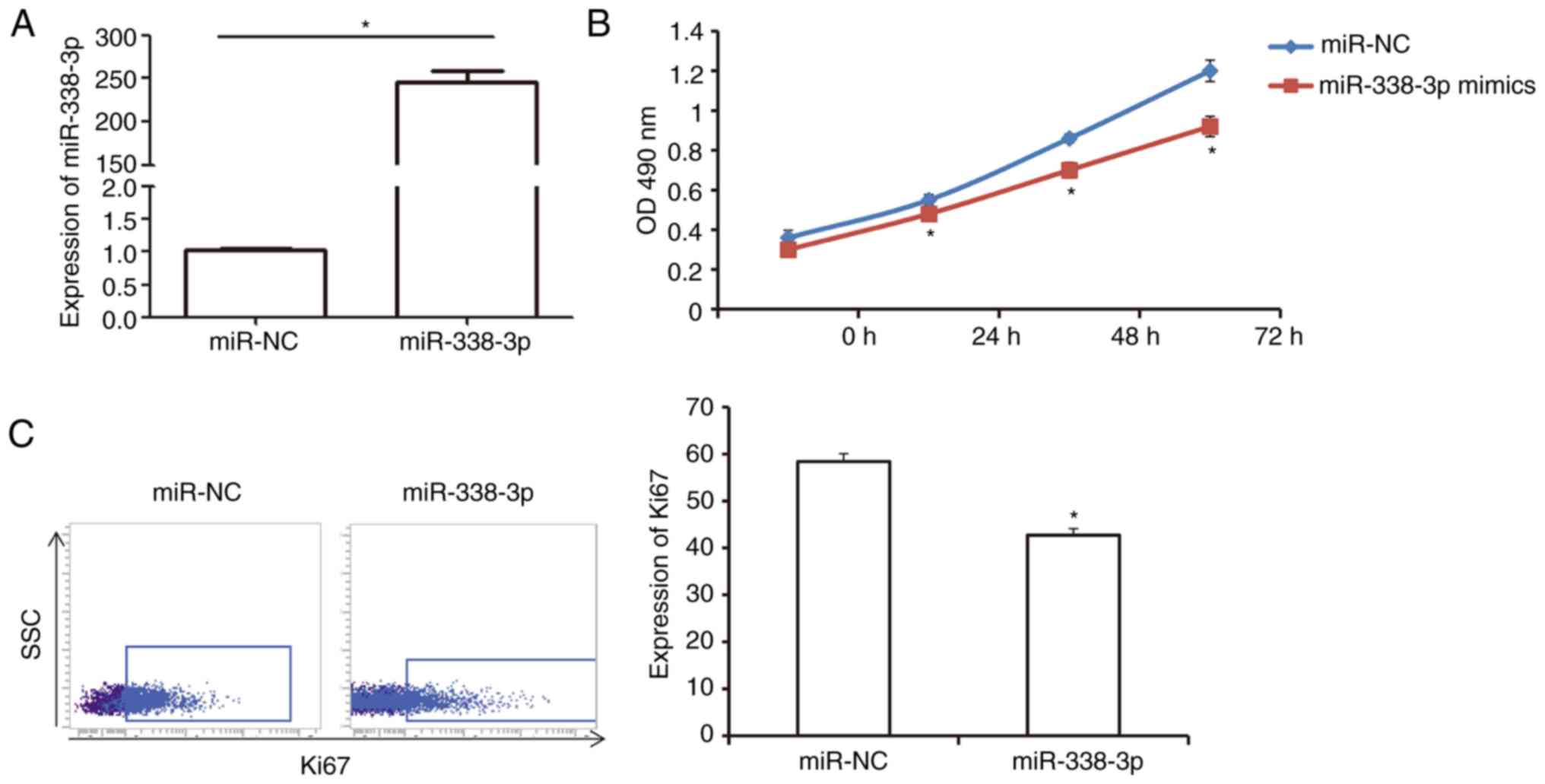 and Ai N: MicroRNA-338-3p suppresses proliferation of human liver