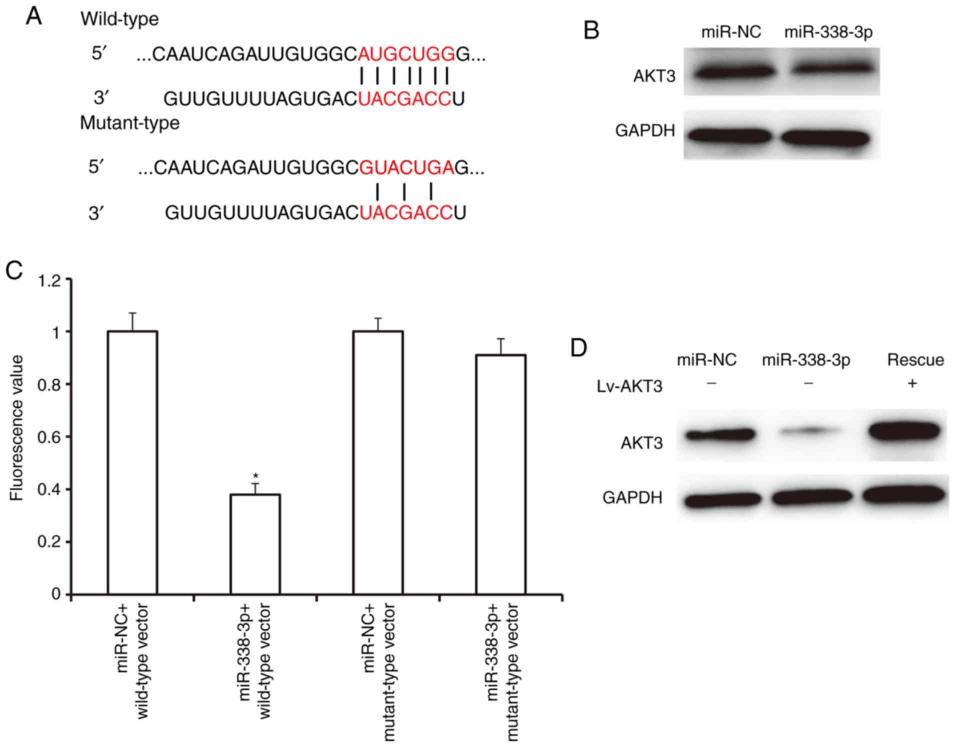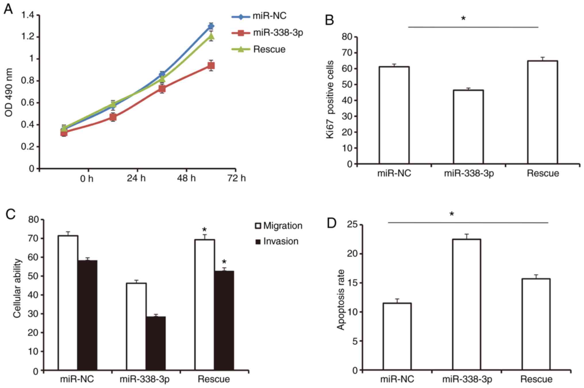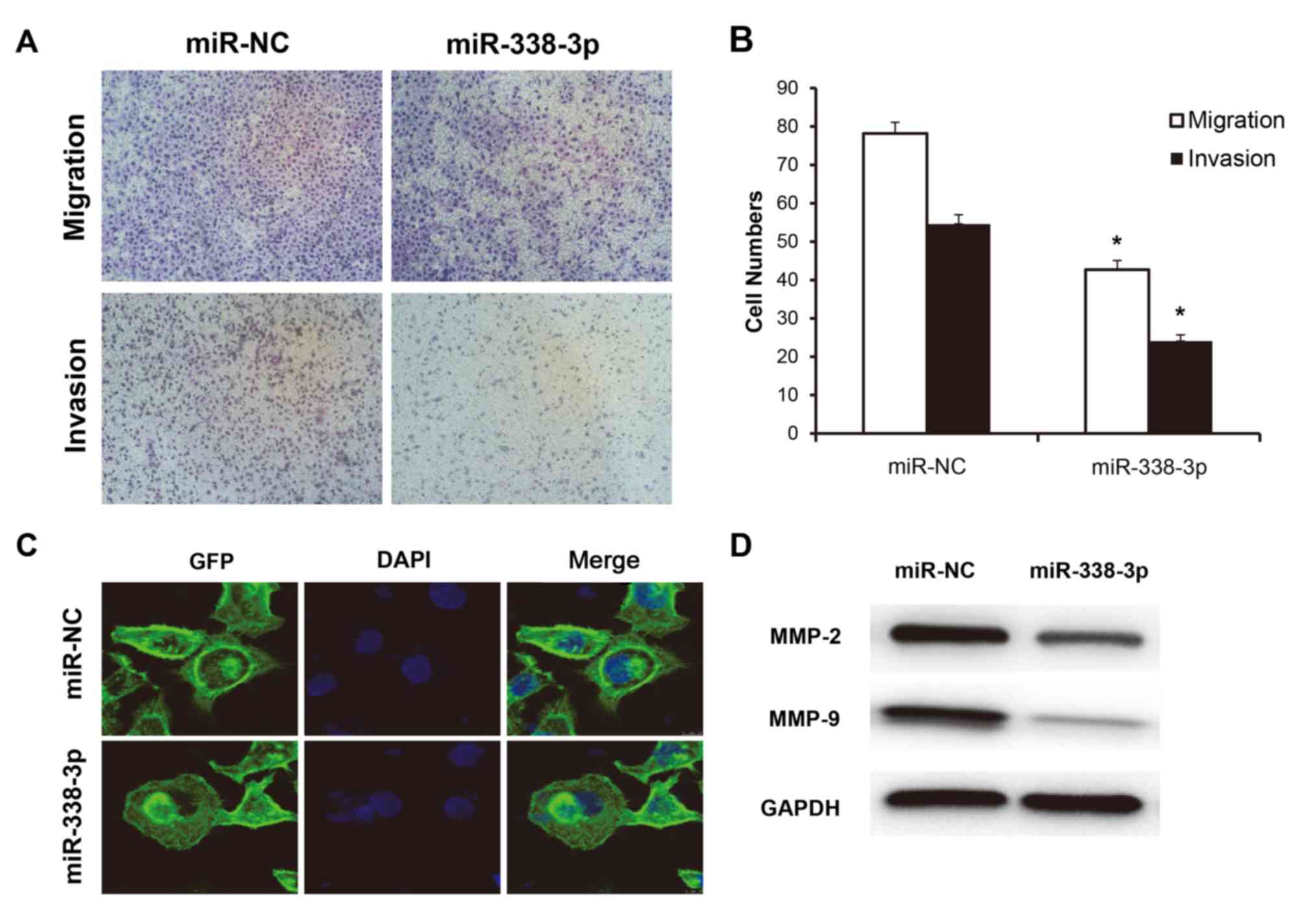 Ge X, Gao H, Li M, Jiang X, et al: miR-338-3p functions as a tumor