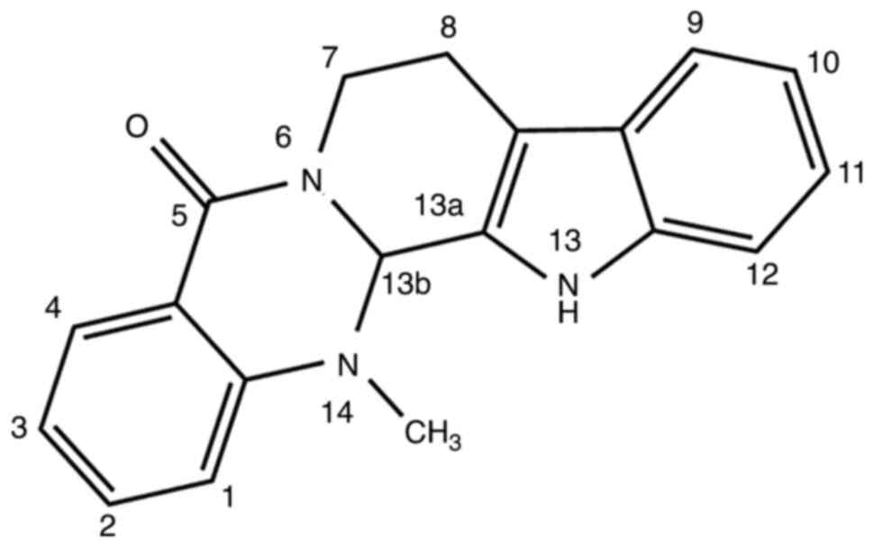 Liu N, Li Y, Chen G and Ge K: Evodiamine