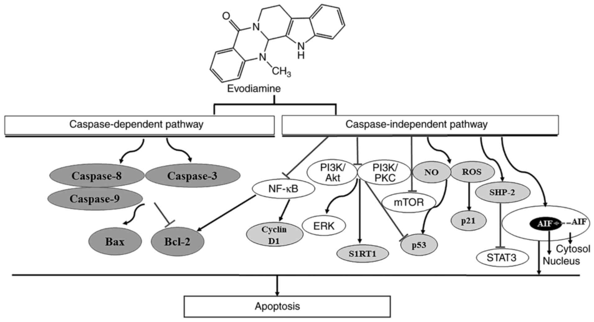 Zhang H and Su SB: Evodiamine induces apoptosis and inhibits