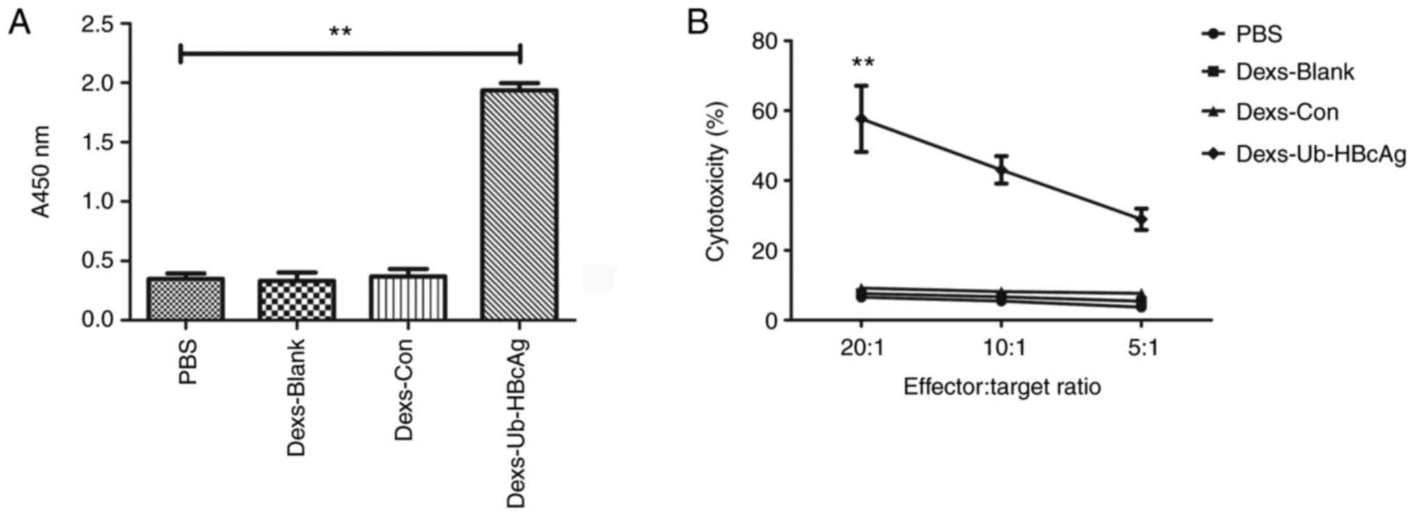 Exosomes from Ub‑HBcAg‑overexpressing dendritic cells induce T‑lymphocyte differentiation and enhance cytotoxic T‑lymphocyte activity