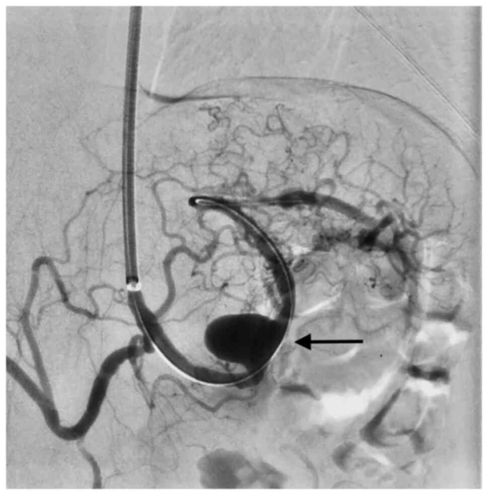 Fankhauser GT, Stone WM, Naidu SG, Oderich GS, Ricotta JJ, Bjarnason H and Money SR: Mayo Vascular Research Center Consortium. The minimally invasive management of visceral artery aneurysms and pseudoaneurysms. J Vasc Surg. 53:966–970. 2011.PubMed/NCBI View Article : Google Scholar | |