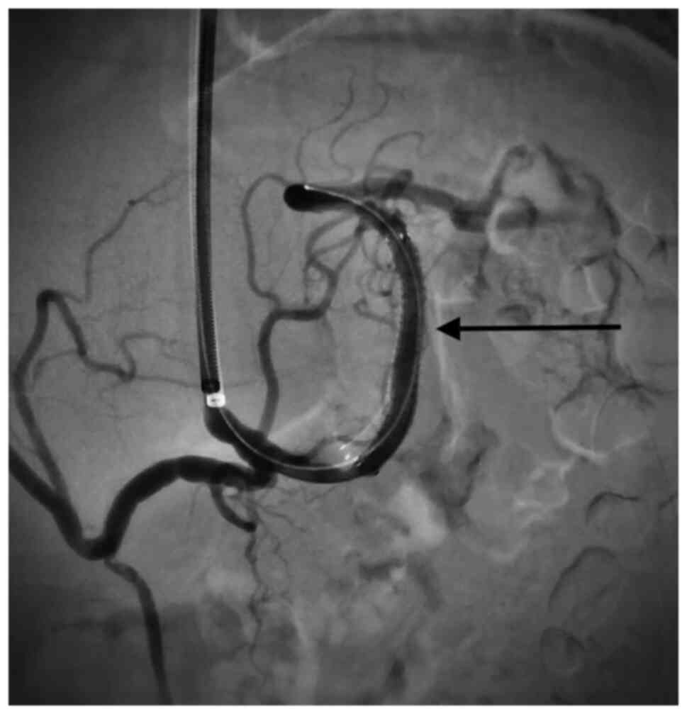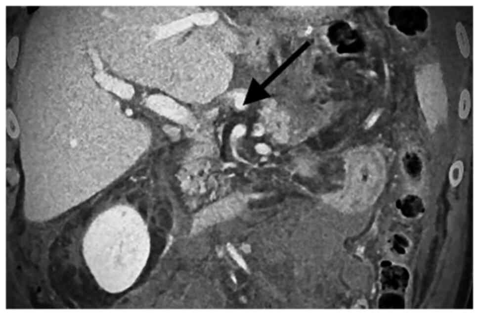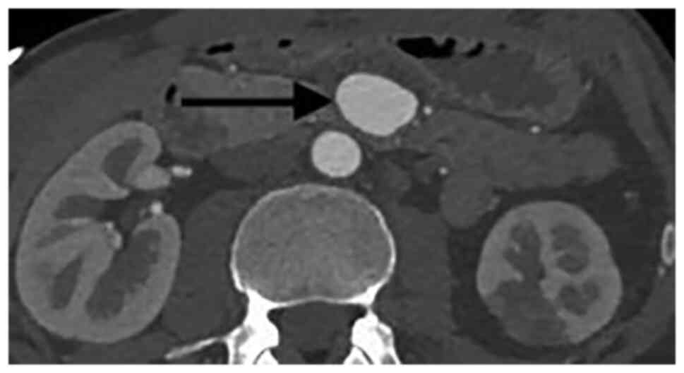 Meyer A, Uder M, Lang W and Croner R: Visceral artery aneurysms. Zentralbl Chir. 135:416–420. 2010.PubMed/NCBI View Article : Google Scholar : (Article in German). | |
